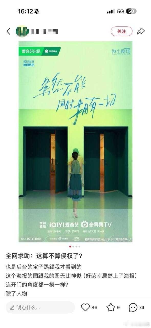 迪丽热巴主演的《虽然不能同时拥有一切》这海报算抄袭吗[doge]