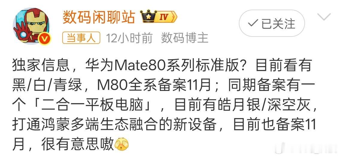 曝华为Mate80系列备案11月华为新品,黑科技满满!华为,11月看你的。