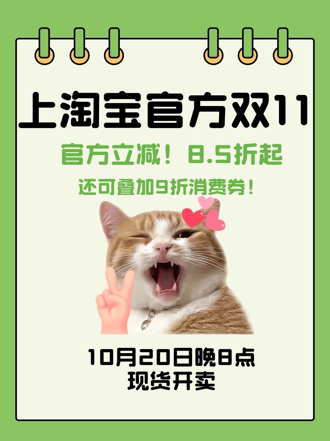 任何人错过今晚8点淘宝双十一开卖我都会“心碎一地”!官方立减8.5折起叠9折消费券,优惠爆炸,速来!