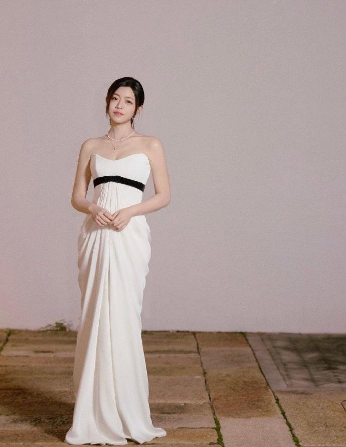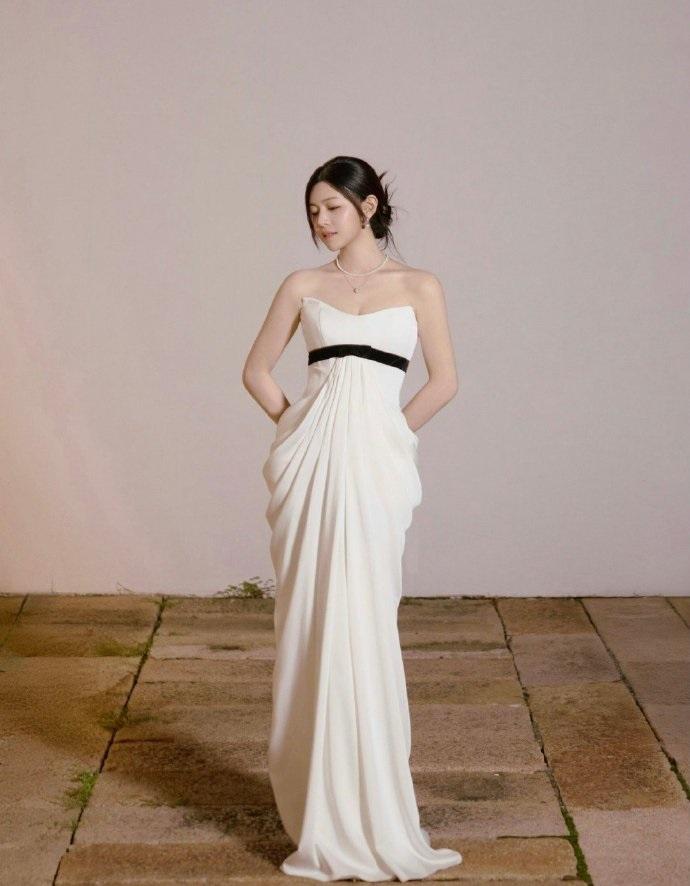 被唐嫣惊艳了!穿抹胸裙性感又有高级感