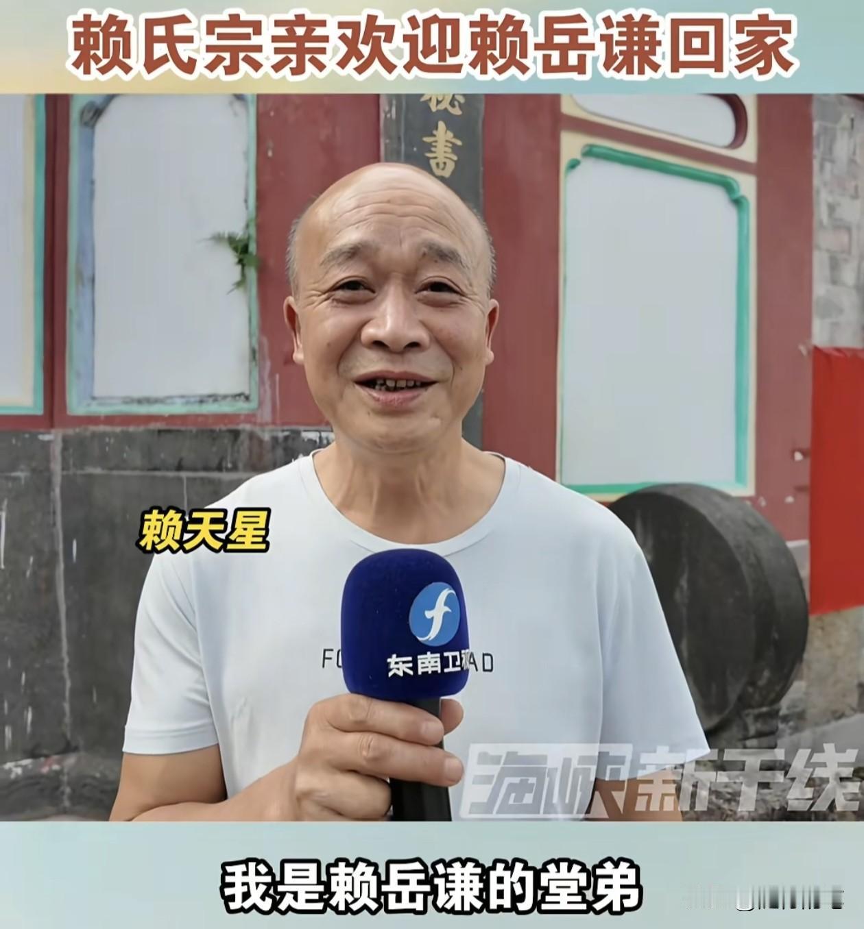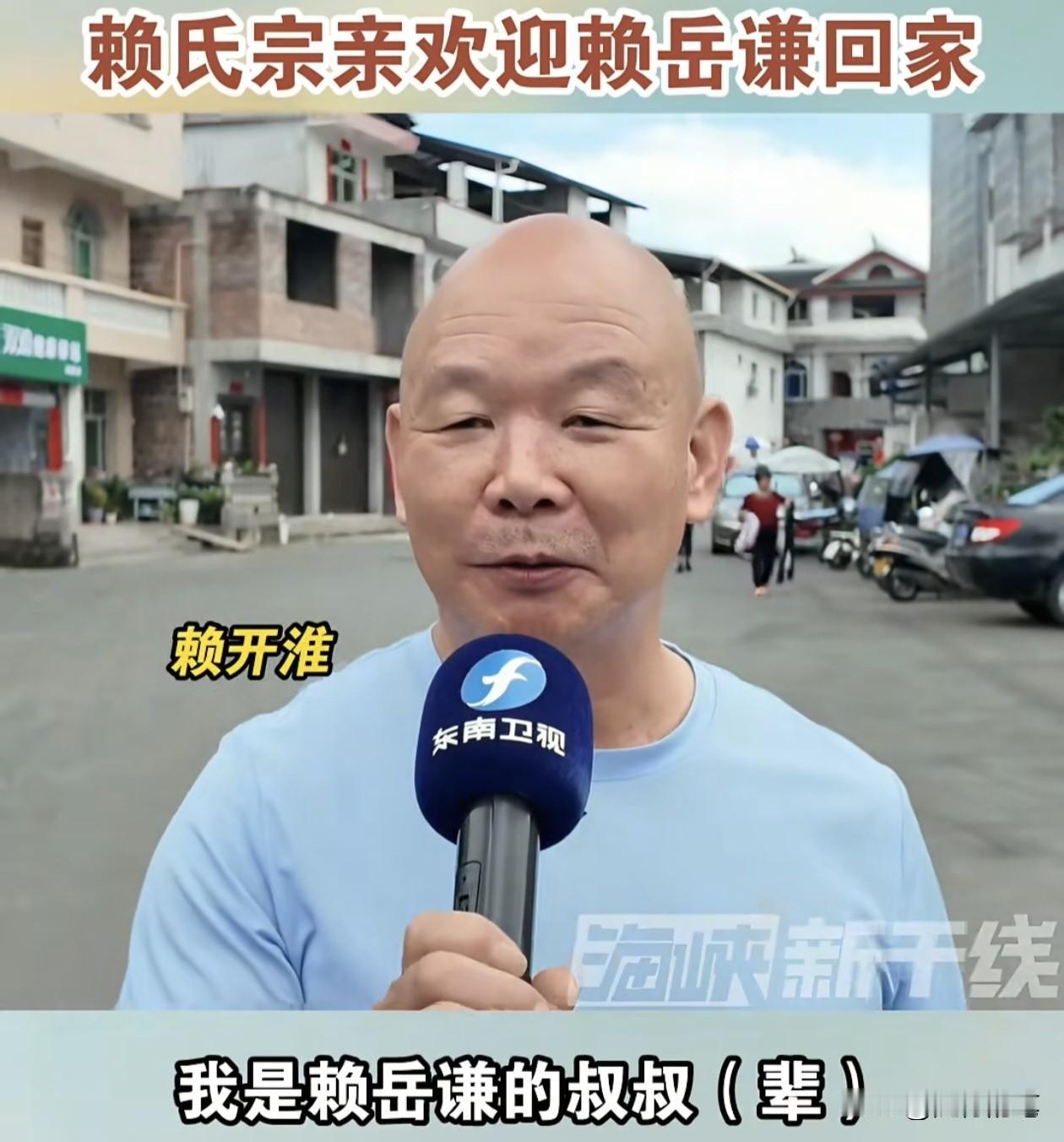 赖岳谦与周玉琴夫妻回福建祭祖,村里的家族亲人纷纷表示欢迎。 这次赖岳谦回来祭祖感觉阵仗不小,赖岳谦一抵达,就有媒体播放采访赖岳谦祖籍所在地村里的家人的视频表示对赖岳谦的欢迎,不仅有堂弟,还有叔叔和公公等,大家都欢迎赖岳谦回来祭祖,感觉赖岳谦在大陆的家族还是非常大的。特别从面相来看,这位堂弟赖天星与赖岳谦有些许相似,要知道赖岳谦是外省第二代,在村里的亲人估计还没有隔多少代,血缘上还是非常亲的。