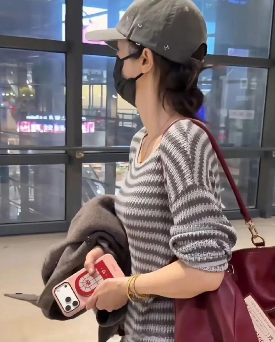 前天被爆疑似有孕肚,她没出来辟谣,在看到有人拍照的时候,直接把外套脱掉,露出平坦的小腹。