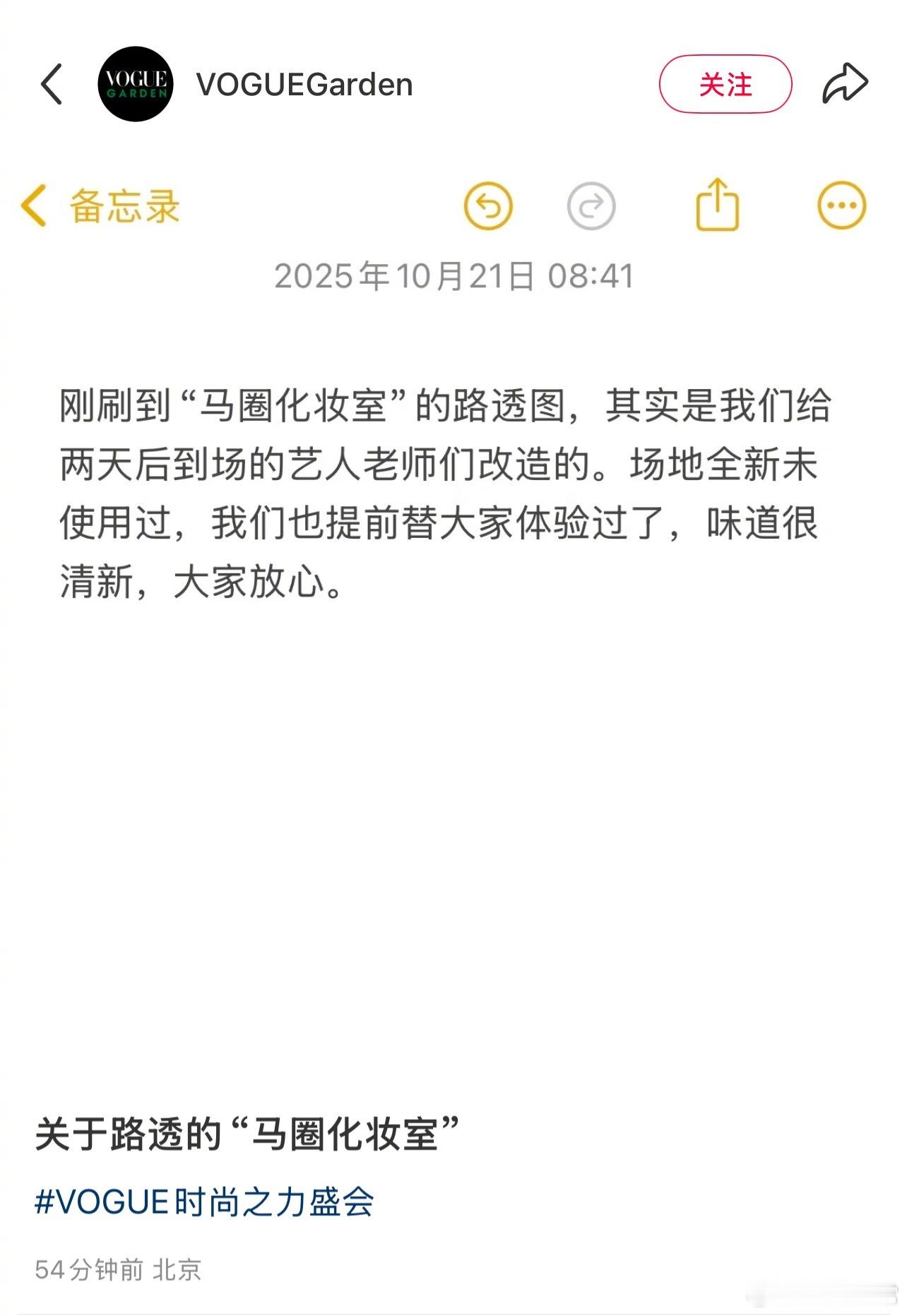 VOGUE盛典艺人化妆间在马圈里,VOGUE回应场地全新末使用过,味道很清新