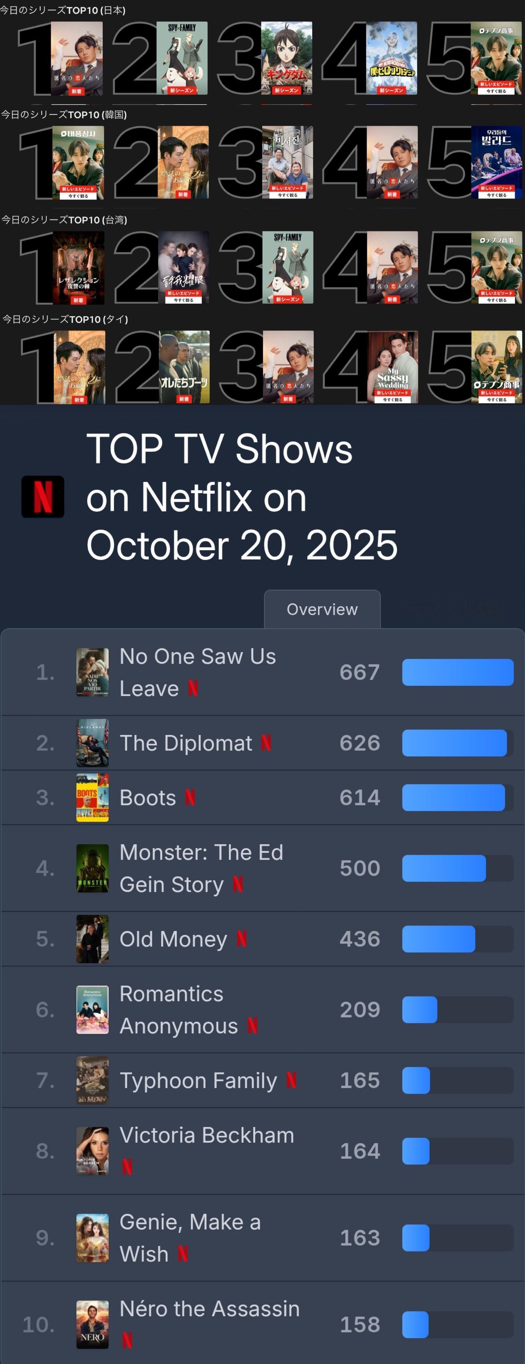 【浪漫匿名者】10月20日网飞成绩,全球第六位