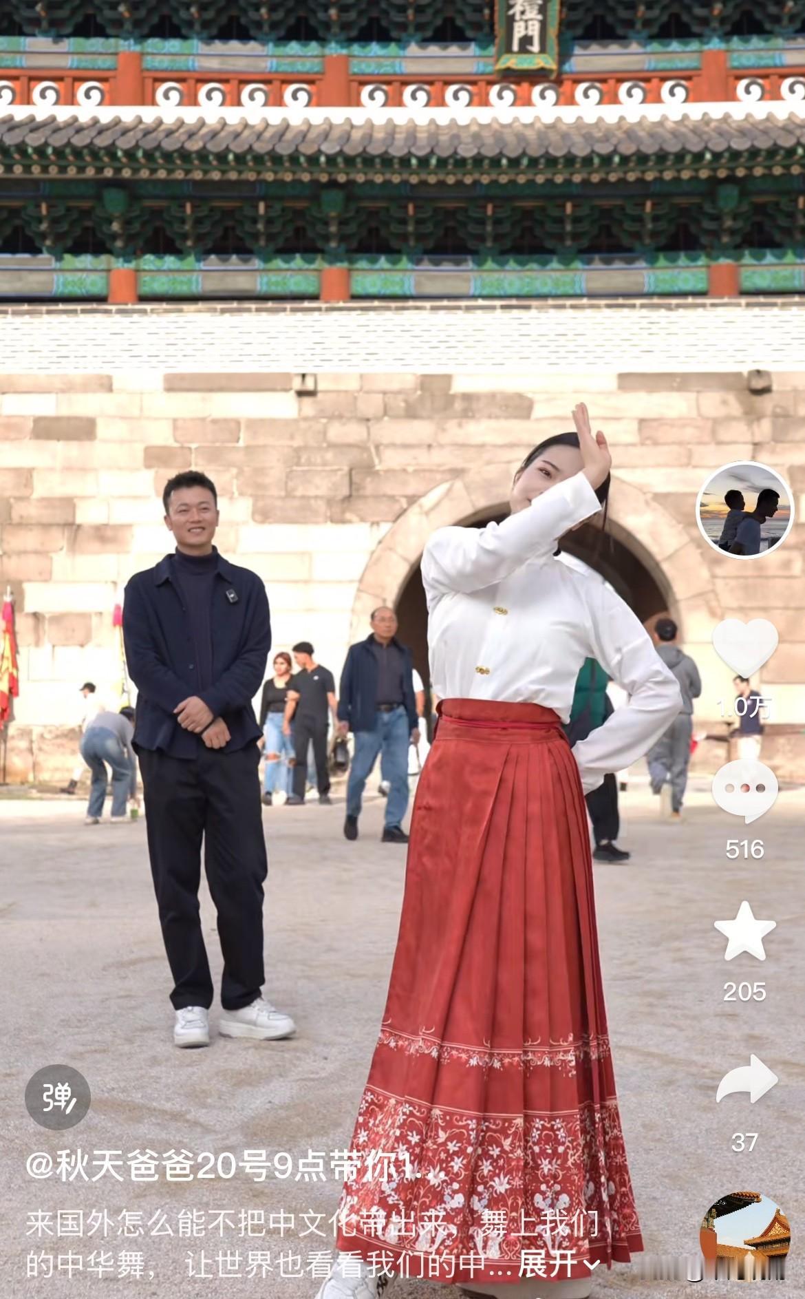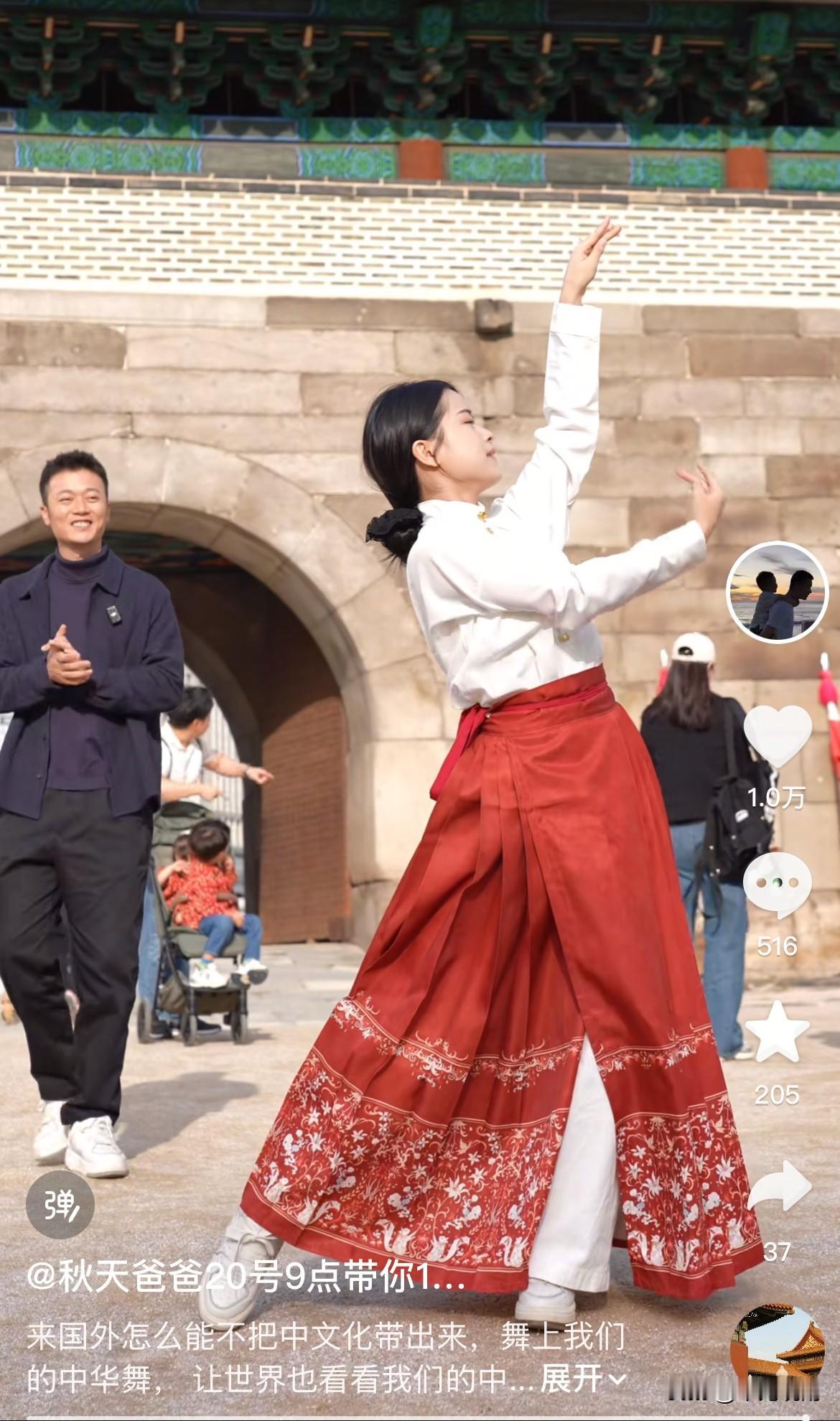 秋天爸爸深情地望着园园翩翩起舞,脸上洋溢着笑容,这便是爱情的滋味! 秋爸与园园前往韩国度假,顺便给“老干妈”们带点福利——化妆品。 不得不承认,秋爸着实宠粉,即便在国外游玩,也没忘记“老干妈”们。 众所周知,韩国的化妆品相当不错,“老干妈”们可别错过这个机会,多订一些,不然错过可要后悔! 园园并未身着韩服,而是选择中国风服饰,跳起国风舞蹈,弘扬中国文化,收获了一波好评。 还是那句话:秋妈已觅得真爱,秋爸没了牵挂,能毫无顾虑地与园园终成眷属啦! @秋天爸爸要拼命努力 @秋天妈妈要努力-下午6点火山荔枝