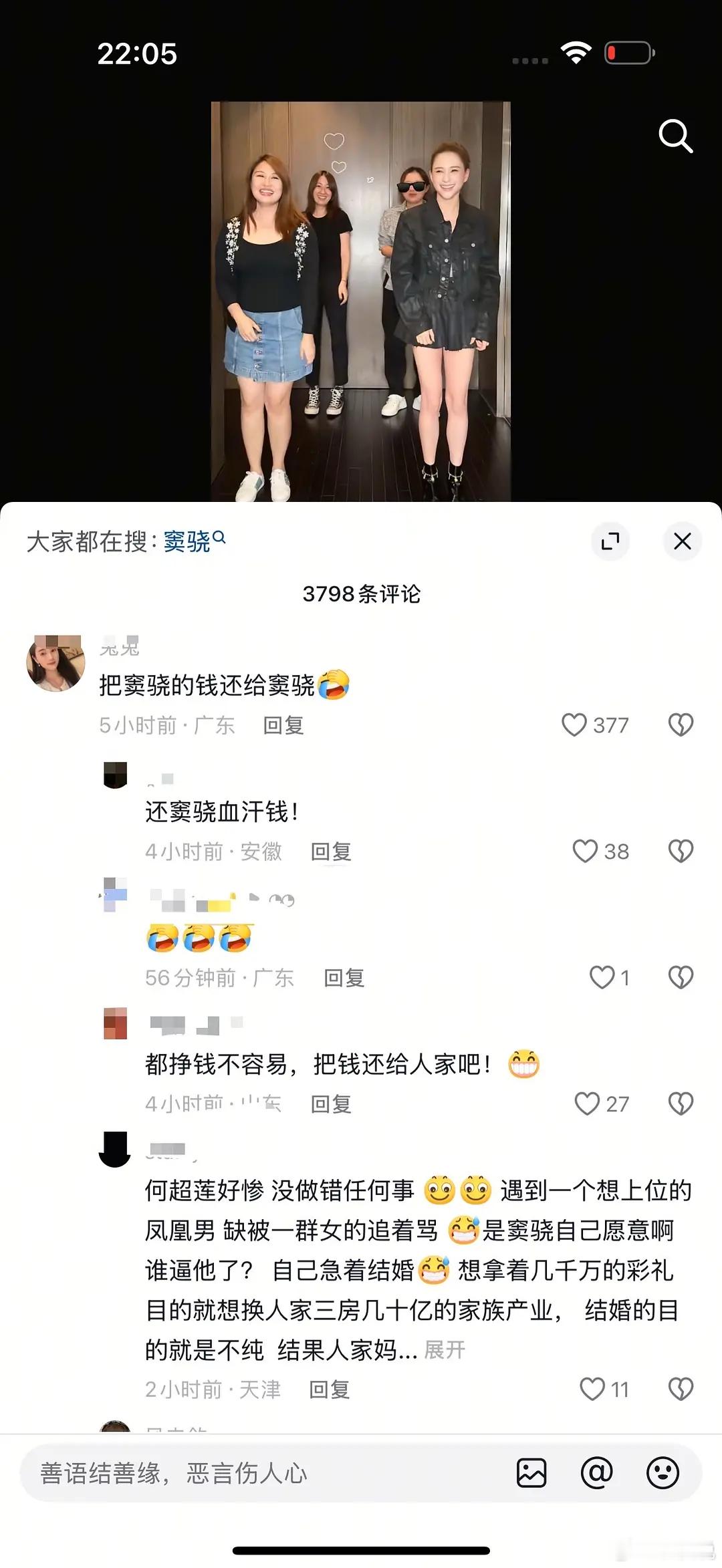 何超莲的抖被冲了,这个世界怎么能这么i男。。没觉得何超莲有什么问题 性别一换 嘲的也是女方一口一个捞女失败 特别是有些女生还上赶着附和🤮🤮🤮
