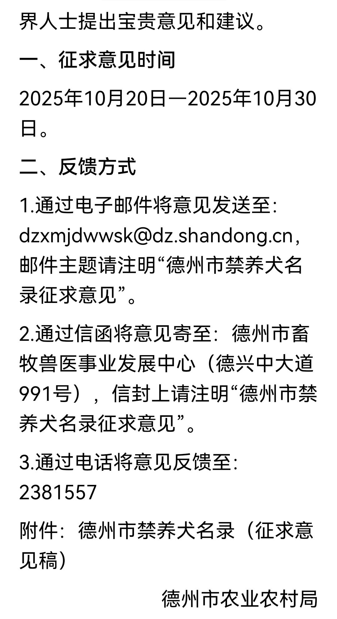 好消息!好消息! 关于禁养犬问题,德州市农业农村局近日发布公告,向社会广
