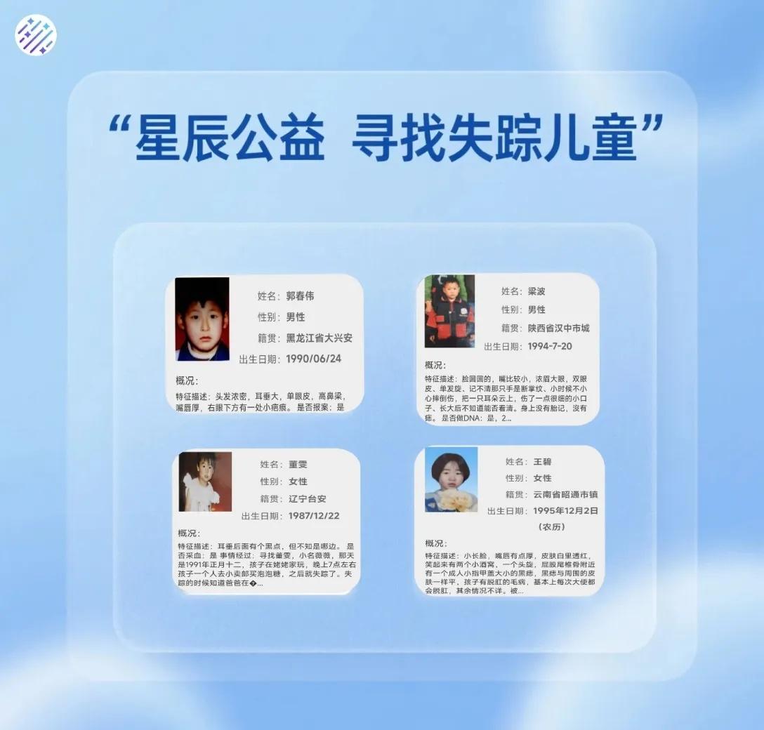 星辰公益,为爱助力 星辰公益 设备编号XC58003 星辰公益,为爱接力。 您的一次转发,或许就能点亮一个走失孩子回家的路。 让我们的每一次关注,汇成照亮他们回家的星河。 让爱回家, 转发即助力,愿天下无拐,团圆不远! 公益 星辰公益