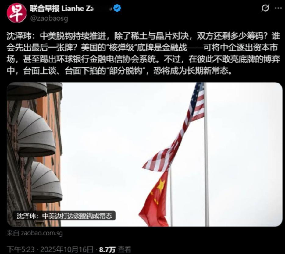 美国警告:如果中国不再向美国出售稀土,美国将中企踢出全球股市、从SWIFT支付体系中踢出中国企业,请问中国你如何招架? 要说,美国不是没稀土,相反,本土藏着上千万吨矿。可问题是,矿挖出来没用,得炼啊!中国现在握着全球 92.3% 的稀土冶炼本事,从开采到提纯的技术,早成了别人绕不开的坎儿。18 项关键的萃取手艺,咱们还列了出口限制,不是谁想学就能学。 美国自己也算过账:想建一套能跟中国比的冶炼生产线,得花 1200 亿美元,还得等 15 年。这还不算,稀土冶炼是个 “电老虎”,得要稳定的大电量。 可美国的电网呢,好多线路和变压器都用了四五十年,夏天一热就停电,连居民用电都保不齐,哪有本事扛冶炼厂的耗电,反观中国,跨区域调电说走就走,电价还低,稳稳托着产业,这差距不是一星半点。 最先慌的是美国军工。洛克希德・马丁的 F-35 战机,每一架都要 417 公斤稀土 — 电子战系统、雷达,少了稀土根本转不动。 以前这些稀土 100% 从中国买,咱们这边新规刚实施 9 天,他们就扛不住了:年产量从 156 架砍到 120 架,一下少了 36 架。五角大楼更急,直接说美军 153 种主战装备里,87% 都要靠中国稀土。真断了供,导弹防御系统没法测,六代机研发直接卡壳,这哪是 “招架”,是中国捏住了关键命脉。 再看美国喊的 “踢中企出股市”。去年 10 月,特朗普团队刚放话要加税,美股立马蒸发 1.65 万亿美元,汽车、军工板块跌得最惨。 其实中国股市占全球市值也就 3%,但全球资本都盯着咱们的新兴产业 — 星展银行说,只要 1% 的资金往中国股市挪,就能让咱们市值涨 21%。真把中企踢出去,美国投资者手里的股票先贬值,市场流动性也得垮,这不是搬起石头砸自己的脚? 至于 “拔 SWIFT” 的威胁,现在更没人怕了。咱们的 CIPS 支付系统,已经覆盖 189 个国家,今年上半年就处理了 90 多万亿的交易。 欧洲企业最先软 ,德国的汽车、制药厂,天天跟中国做买卖,真断了 SWIFT,贸易成本得涨一大截,他们本来经济就不好,哪禁得住这么折腾?所以美国喊了半天,欧洲那边根本没人搭茬。 中国这边也不是光看着,反制来得又准又稳。商务部直接把 6 家美国涉军企业拉进 “黑名单”,他们想从中国买零件,门都没有。 就算恢复稀土出口,也只给 6 个月期限 — 想长期要?得坐下来好好谈。之前咱们查稀土走私,一下查出 3800 多吨非法转运的货,这说明啥,美国企业没正规渠道,都开始走歪路了,早就慌了神。 说到底,这场博弈根本不是 “中国怎么招架”,而是美国自己没底气。中国手里的不是 “断供权”,是定规矩的权力 — 以前稀土随便卖,现在得按咱们的规矩来。真要比硬实力,先慌的永远是没底气的那一方。