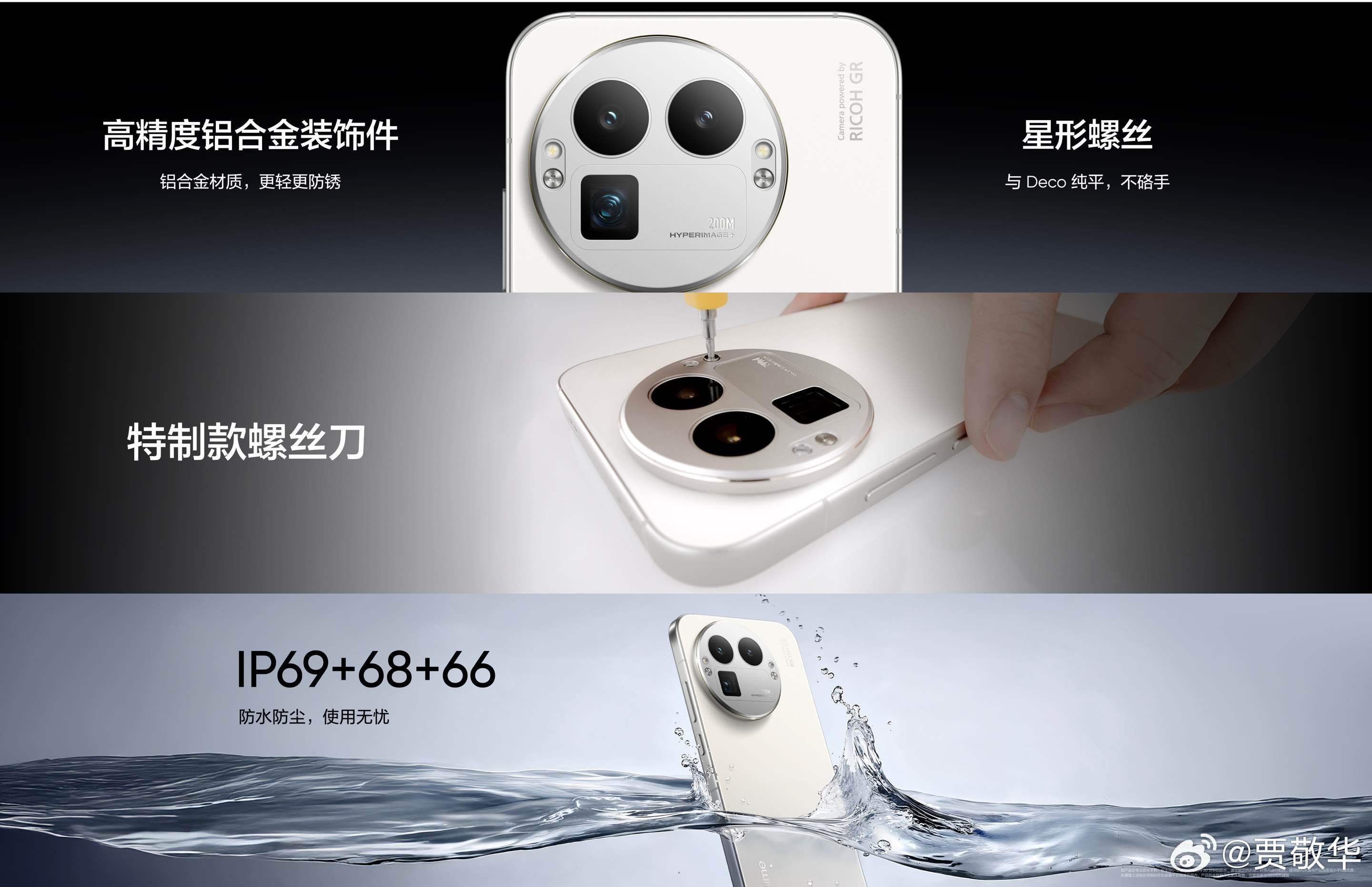 -高精度铝合金装饰件,轻盈防锈;星形螺丝与Deco纯平,握持舒适无感;IP69满级防尘防水全面防护