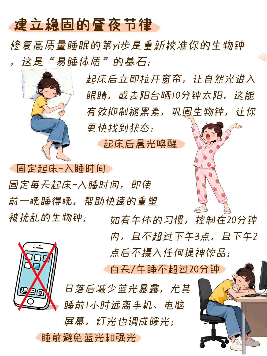 那种躺在床上辗转反侧; 眼睁睁看着时间流逝的感觉真的让人崩溃; 其实这都是因为长期的不良作息和生活习惯导致的; 因此只要通过合理的多方位调整; 就能帮助你慢慢的养回“易睡体质”;
