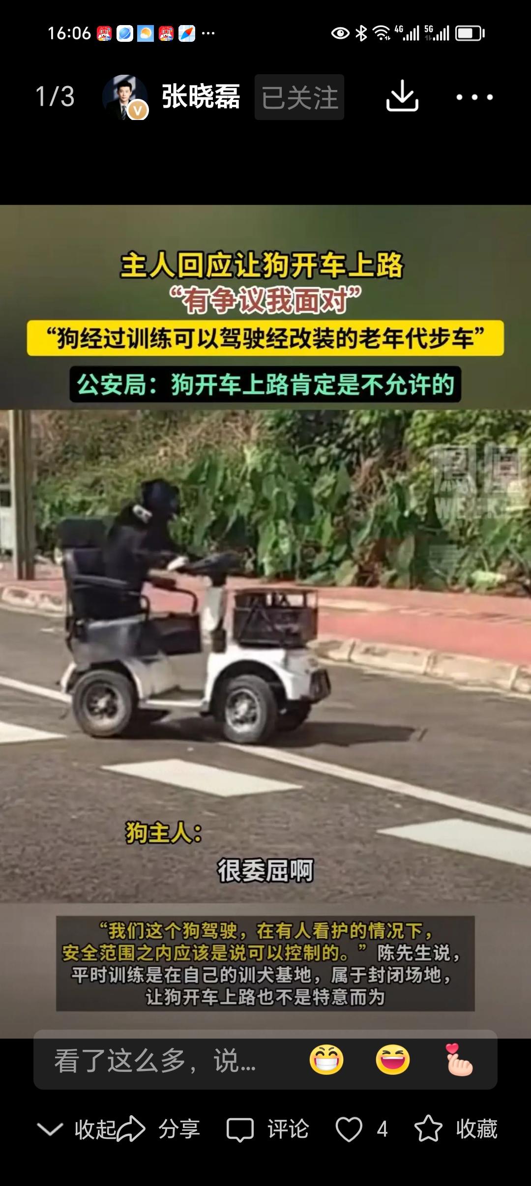 四川眉山,一只狗开着老年代步车上路,被网友质疑不安全!狗主人:“很憋屈,以前牛拉车,猪拉车都是为人类服务,狗为什么不能开车?如果我犯法,我愿意承担责任!”网友:教练果然没骂人,自动挡icon狗都会开 老年人代步车 就在网友们纷纷议论纷纷,质疑声不断之时,这只“驾驶”的狗狗却成为了一个温暖的焦点。有人开始反思:我们是不是太过于以人为中心,忽略了动物的感受和能力?这只狗也许只是想用自己的方式表达对生活的热爱和对主人的陪伴。它没有做错什么,只是用一种不同的方式,打破了我们对“能力”和“界限”的固有认知。 更令人感慨的是,狗主人的那番话引发了不少人的共鸣。他说:“以前牛拉车,猪拉车,都是为了人类的生活便利。现在,狗也能开车,难道不是一种尊重和信任的体现吗?”这句话像一股清流,冲破了偏见的阴霾。或许,社会的进步不正是源于敢于打破常规,尝试新的可能性吗? 这件事也让我们深思:在快速发展的时代,科技与创新不断改变我们的生活,动物与人类的关系也在悄然发生变化。我们是否应该给予动物更多的尊重和理解?他们也许不懂驾驶,但他们懂得陪伴、信任和依赖。我们用心去观察,就会发现,许多动物都在用自己的方式,默默地传递着爱与忠诚。 这只狗开车的背后,是一种勇于打破偏见、敢于创新的精神。它告诉我们:只要我们愿意尝试,就没有不可能。也许下一次,你会看到一只猫在开咖啡馆,一只鸟在帮忙送快递。这不仅仅是奇趣的场景,更是社会包容和创新的象征。 最后,希望每个人都能从这只“开车”的狗身上学到一点:不畏偏见,勇敢追求自己喜欢的生活方式。我们每个人都可以是那个打破常规的“创新者”,用心去理解和尊重这个世界的多样性。毕竟,真正的勇气,是敢于在传统之外,找到属于自己的那份精彩。老年人开车