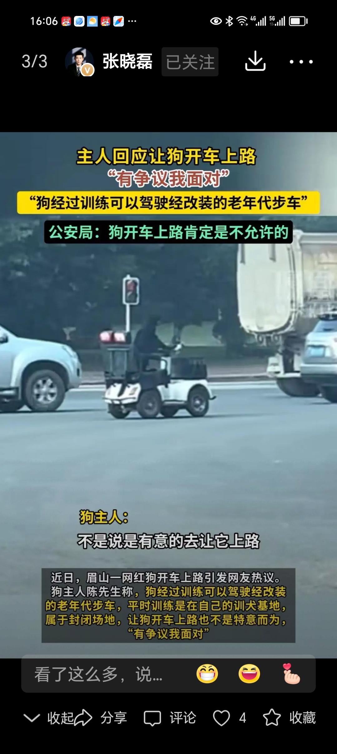 四川眉山,一只狗开着老年代步车上路,被网友质疑不安全!狗主人:“很憋屈,以前牛拉