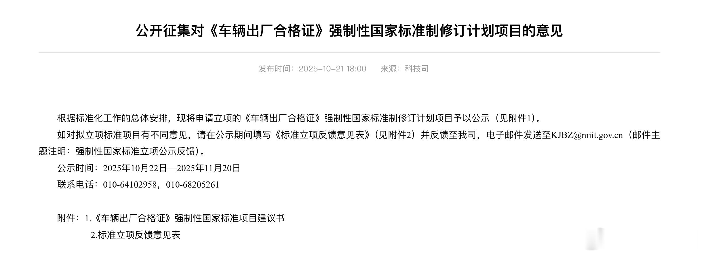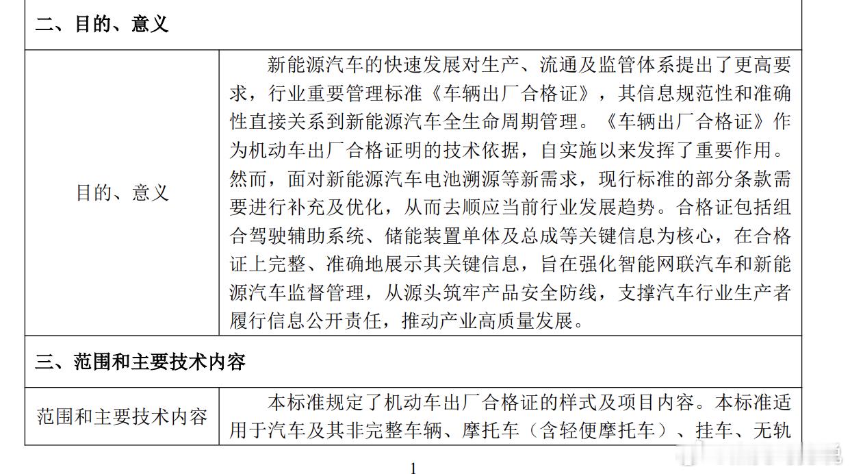 工信部公开征集对《车辆出厂合格证》强制性国家标准制修订计划项目的意见。新的合格证包括组合驾驶辅助系统、储能装置单体及总成等关键信息为核心,在合格证上完整、准确地展示其关键信息,旨在强化智能网联汽车和新能源源汽车监督管理,从源头筑牢产品安全防线,支撑汽车行业生产者履行信息公开责任,推动产业高质量发展。