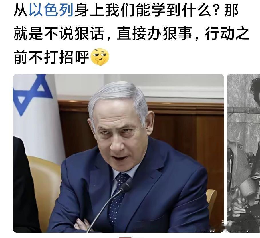 纠正一下,从以色列(严格说是内塔尼亚胡)身上不是学到什么,而是看到什么——说狠话