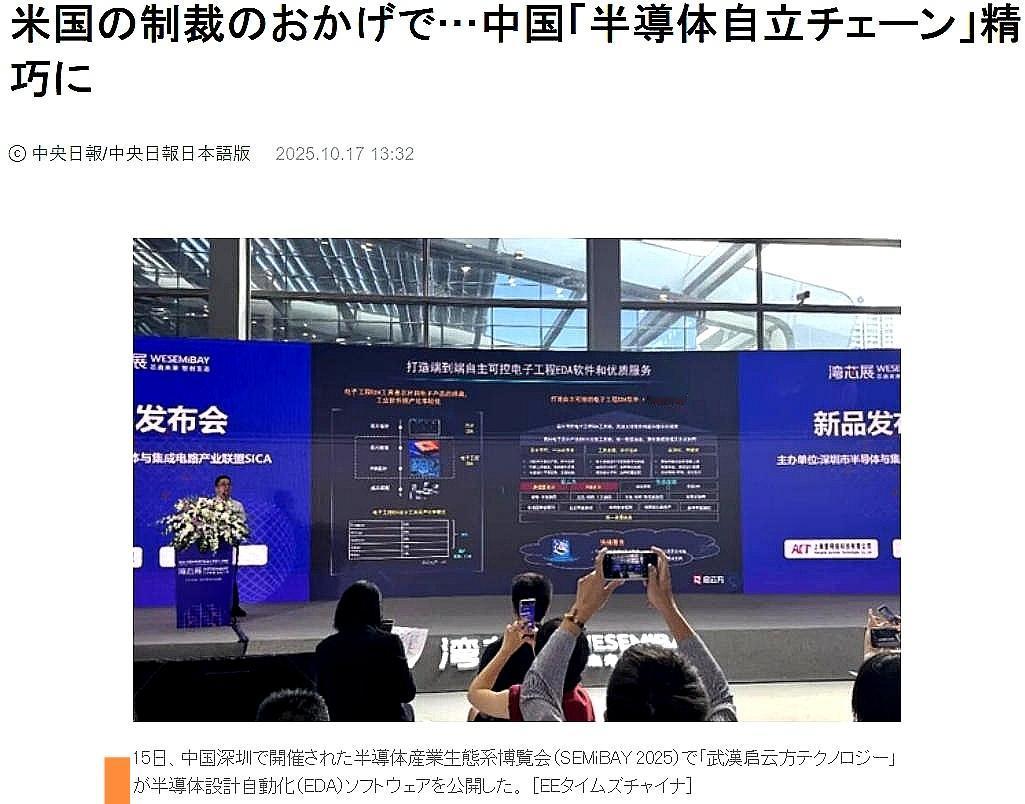 日媒:拆解分析中国智能手机,发现其惊人的半导体技术实力! 中美双方都在针对彼此的弱点进行博弈。然而,在贸易争端反复紧张与缓和的过程中,激发了中国斗志,其独立的半导体生态体系正在变得更加精密。 10月15日于深圳举行的“半导体产业生态博览会(SEMiBAY 2025)”上,中国以自主知识产权开发的“半导体设计自动化(EDA)”工具公开亮相。EDA是用于半导体芯片电路设计和验证的必备软件。