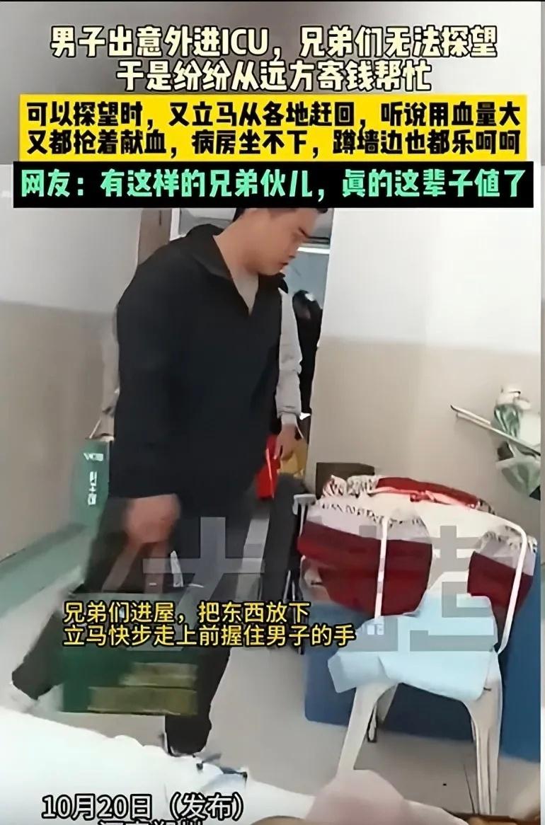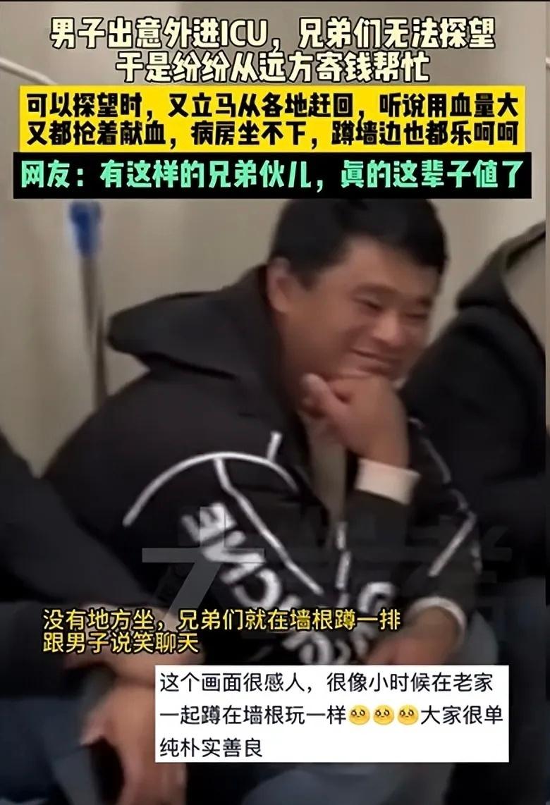 男子ICU收到兄弟转账哭成孩子当兄弟们挤满了病房,甚至连坐的地方都没有时,他们选