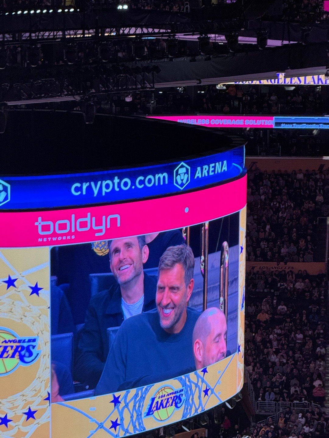 诺维斯基今天也在现场!是来看卢卡的。湖人 vs 勇士
