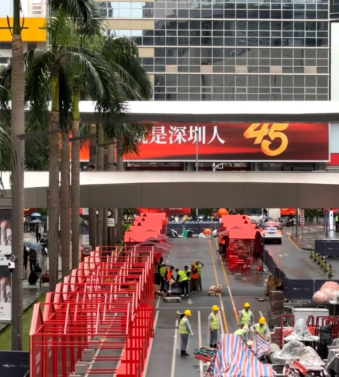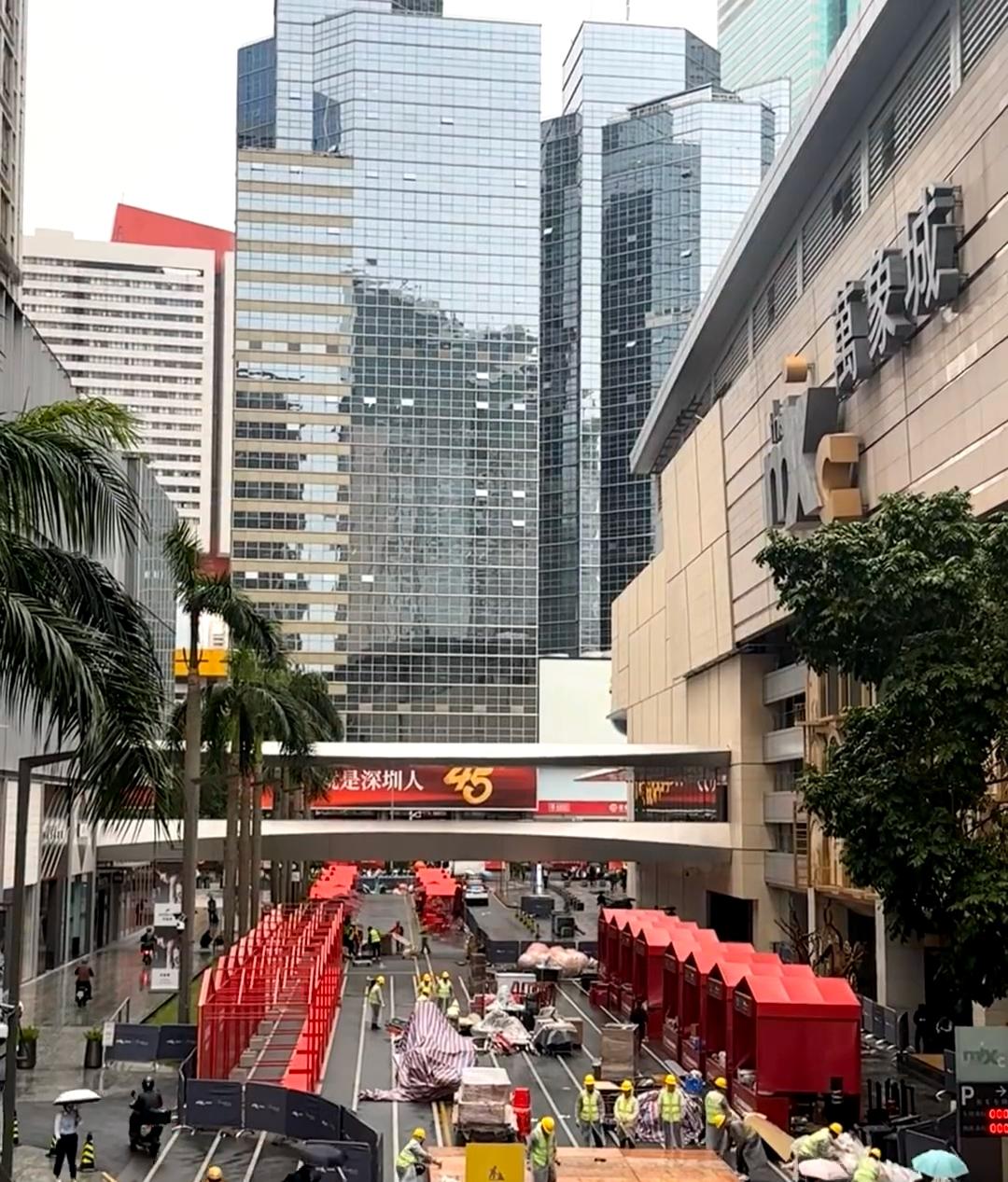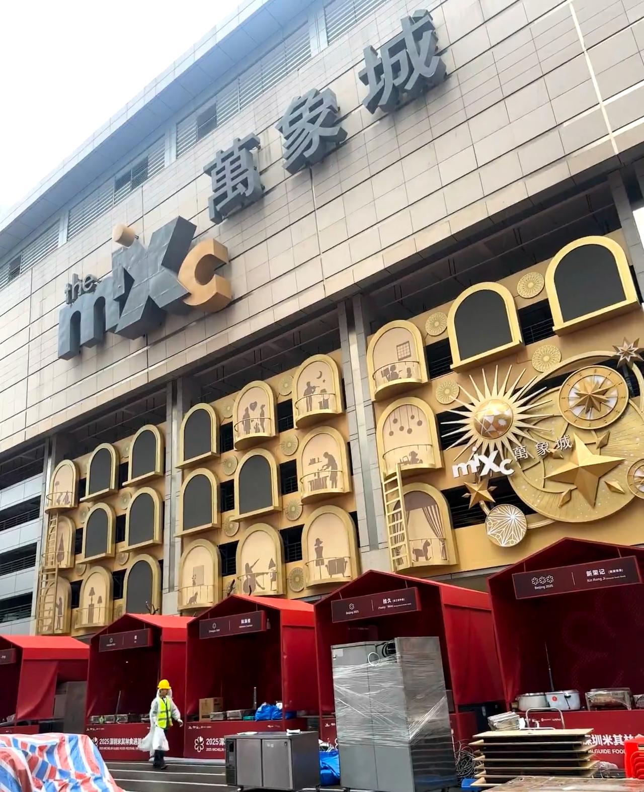 深圳万象城首届米其林“路边摊”,排场真大。 刷到深圳首届米其林美食节落户深圳(罗湖)万象城的消息,昨天开始道路管制,启动布场。 今早顺道过来看看。好家伙,满眼望去红红火火,这排面可真不小,把整个万象街占了一大半。车辆要么进停车场,要么原地调头。 说是有8家米其林餐厅,现场已经看到新荣记、拾久等餐厅的摊位了。还得是深圳万象城,“荣叔”来了也只能摆摊。 这么大阵势,这个路边摊看来是非吃不可?