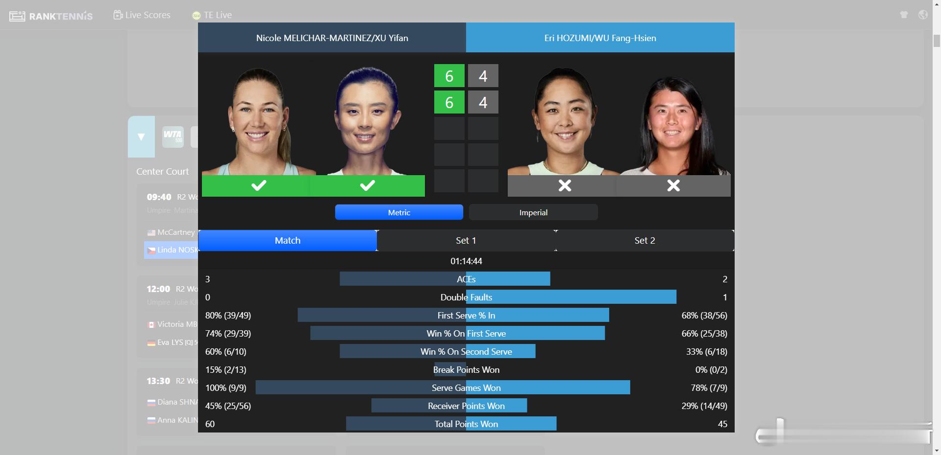 🇨🇳徐一璠/🇺🇸梅里查尔6-4/6-4吴芳娴/🇯🇵穗积绘莉