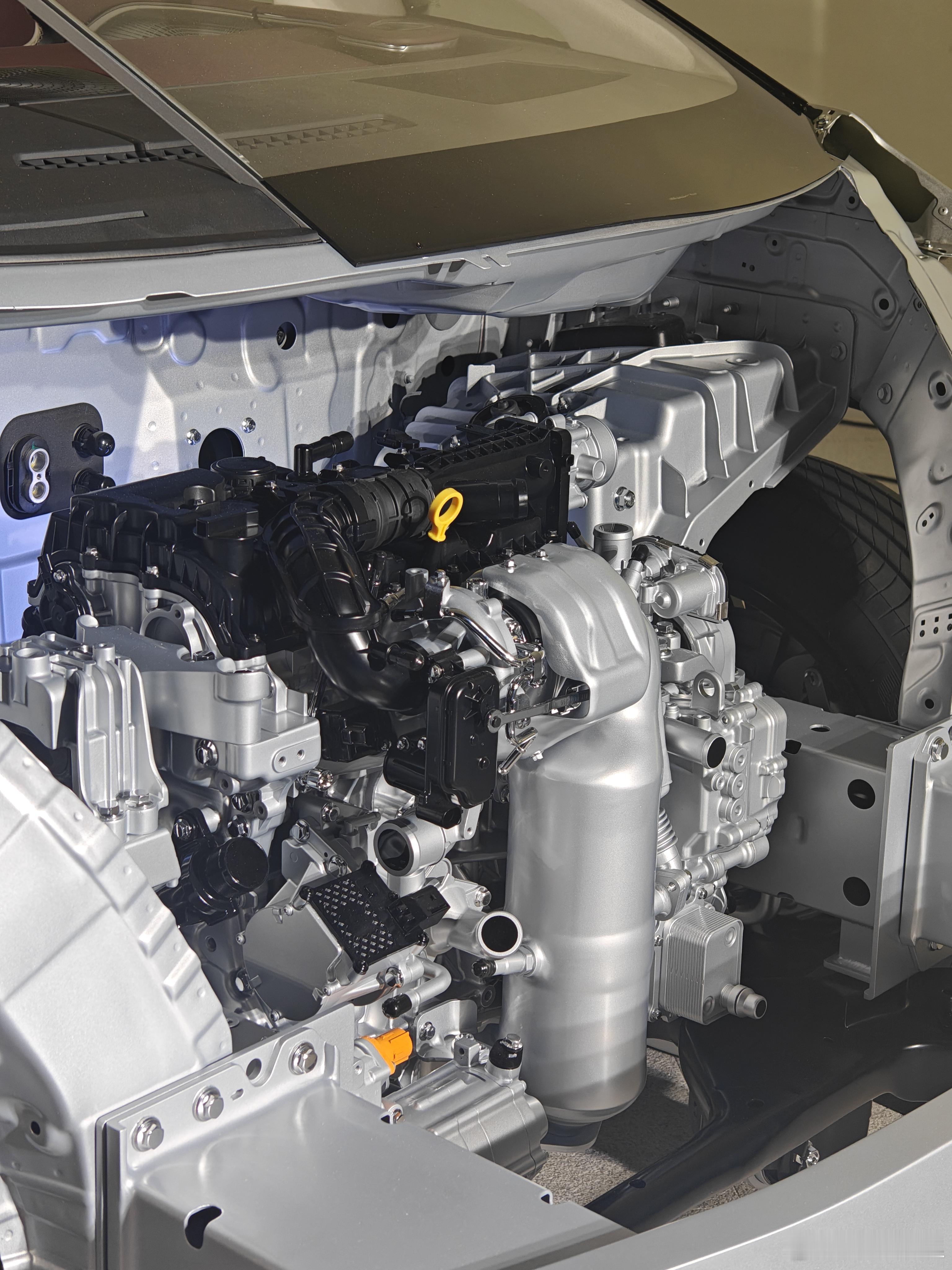 首先是关于增程器的位置,已经非常明显是布局在前舱,这也和大多数增程车型一致,小鹏采用了东安动力的1.5T增程器,这也是尊界S800同款。它有个特点,就是采用直连式曲轴与发电机刚性连接,不再需要皮带来传动,这样体积就更小了,更适合X9这样短车头的车型。