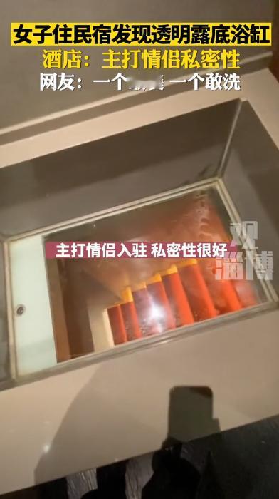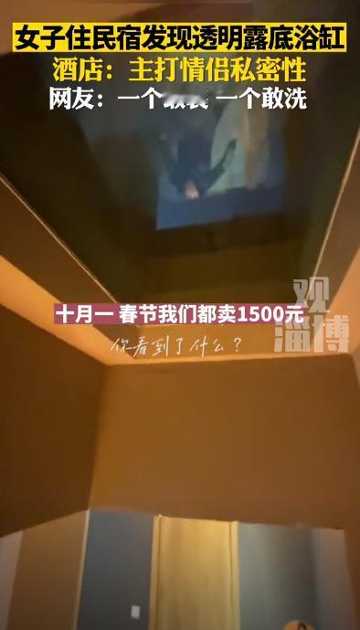 吉林一女子和朋友住民宿,准备泡澡时,竟然发现浴缸底部是透明的,她凑近一看,能清晰看见楼下的楼梯,她朋友下去抬头一看,浴缸底部一览无余,在这泡澡是一种什么体验?害怕走光,她根本不敢泡澡了。网友:一个敢装一个敢洗! 2022年,一家民宿因为一只浴缸上了热搜,事情的起因是张女士(化名)和朋友玩了一天住进阁楼的时候就想着泡一个热水澡,然而就她们准备泡澡时,却发现浴缸底部竟是一整块透明玻璃。 她凑近一看,楼下楼梯一清二楚,手感滑溜,不像普通陶瓷,她赶紧让朋友下楼确认,结果朋友一抬头,浴缸底下的情况真的能看得一清二楚。 随后两人立马就找了民宿老板掰扯说这根本就没办法洗澡,不料民宿老板却把这种设计当卖点,称这是“特色设计”,专门为情侣打造浪漫房间,并保证房子独门独户,不会有外人偷看。 事后这件事情被网友们刷到了之后,一些网友们直言吐槽:“一个敢装,一个敢洗!”透明浴缸完全没有私密性,只剩下透明感,有人甚至调侃设计灵感像水族馆,把人当观赏对象。 泡澡本来是放松、休息的时间,现在却变成压力体验,这种设计不是创意,而是在挑战人的基本安全感。 透明浴缸反映出一些民宿追求网红效果、本末倒置的经营思路,为了吸引流量和关注,设计奇怪、夸张,但却忽略了住客最基本的安全和隐私。即便短时间吸引眼球,也可能让客人不再回头。 安全感和舒适度才是民宿最重要的价值,创意不能以牺牲用户权益为代价,这样的设计不仅让人住得不舒服,还可能存在实际风险,玻璃万一破裂,后果严重。 那么通过这件事情也告诉我们,民宿设计的核心是回归用户价值,再有创新的房子都不如让住客们住的舒服,应该将这些创新思维放在如何挑选更适合大众的床上用品。 所谓“网红设计”,不如安全感和信任可靠,一旦体验不好,不仅口碑受损,也提醒民宿经营者,创意可以有,但不能牺牲最基本的用户权益。 对此,你还有什么看法呢? (信息来源 :观淄博 )