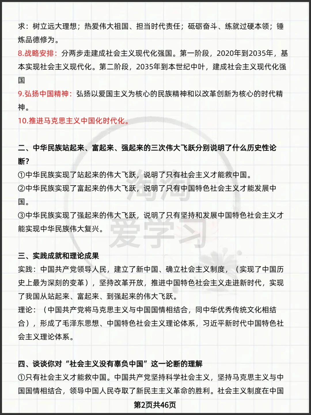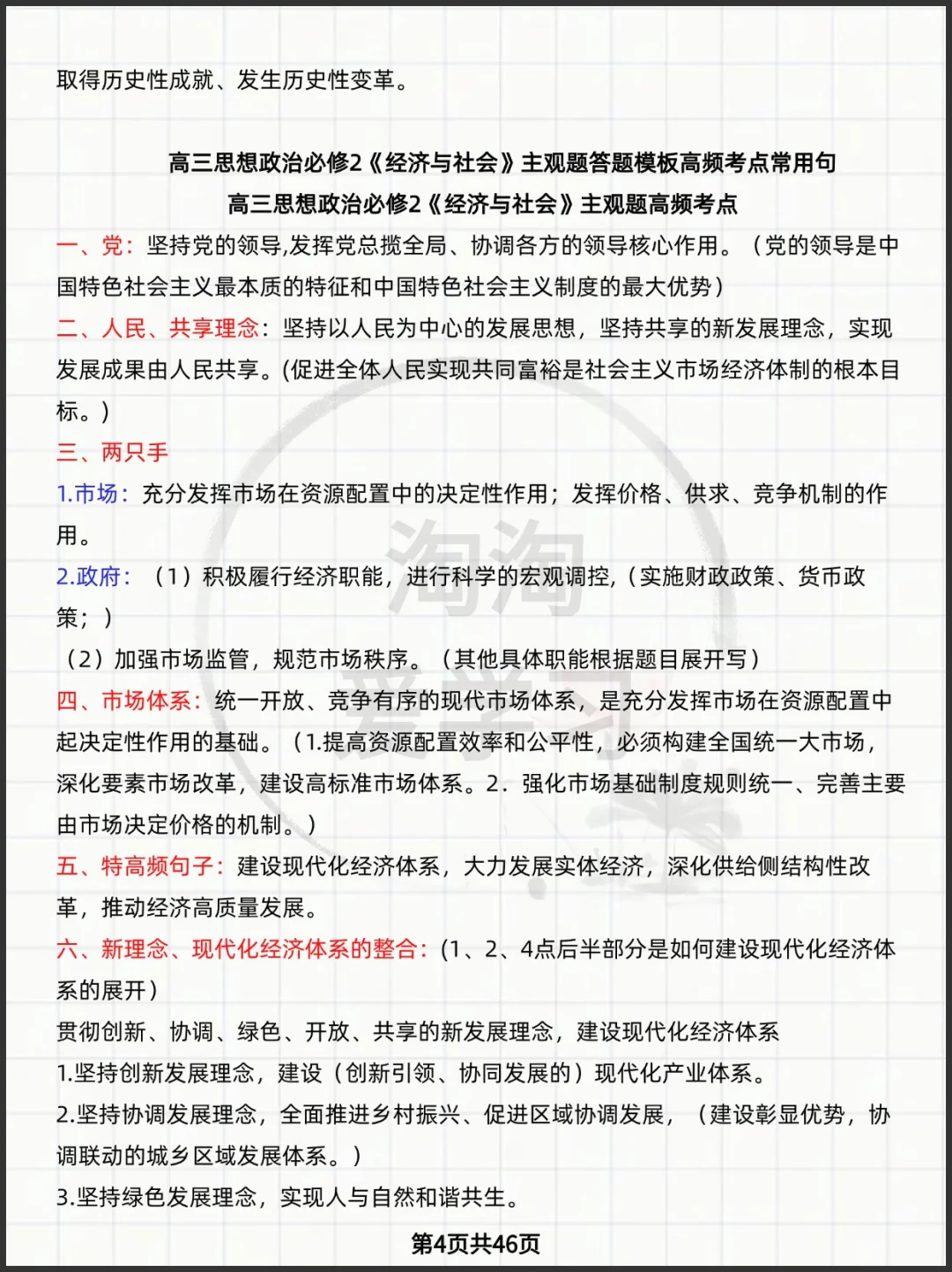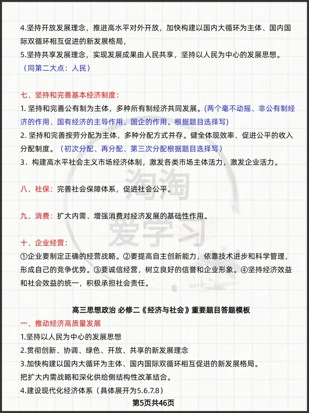 高中思想政治必修123+选择性必修1234知识点背诵主观题答题模板高频考点常用句
