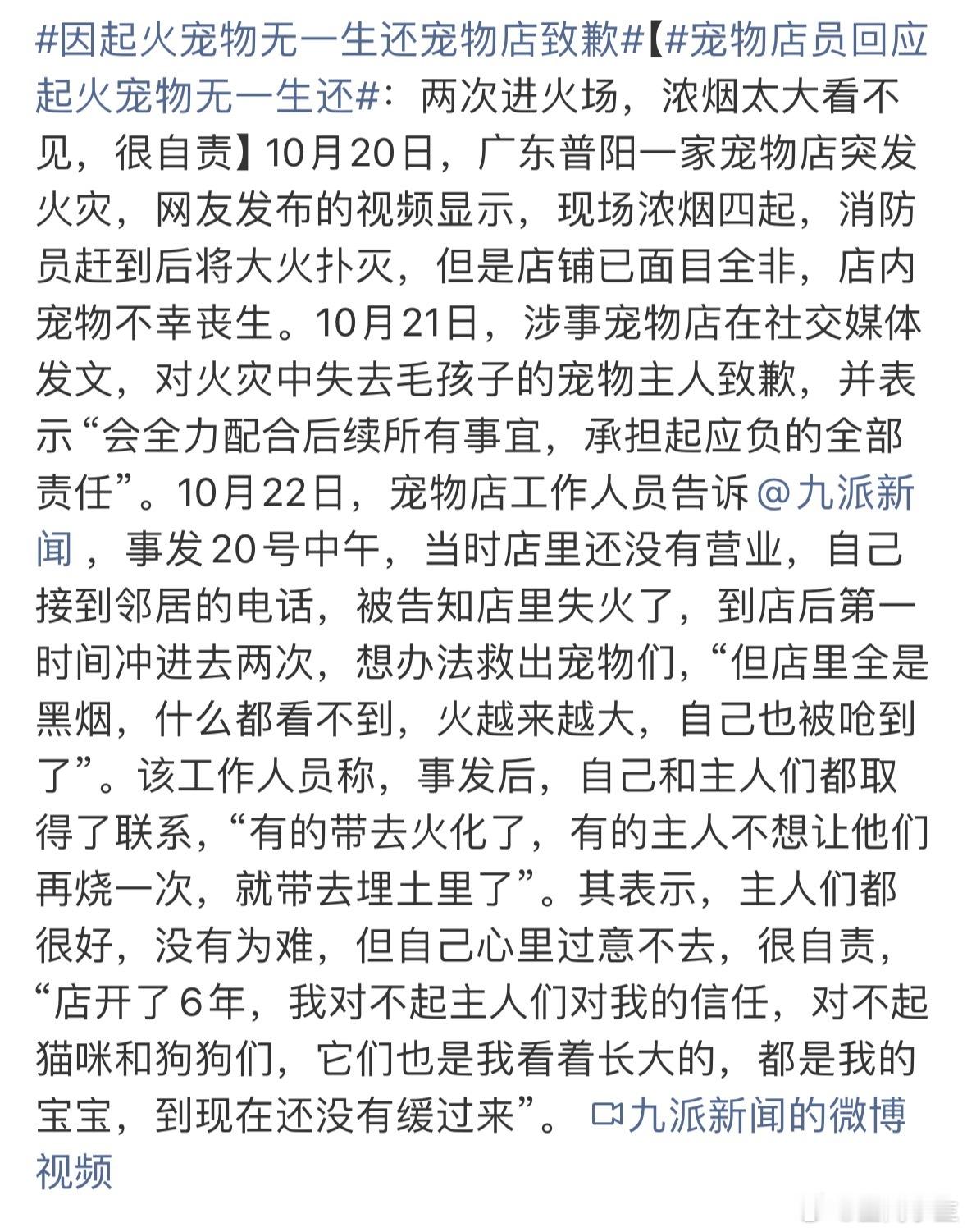 宠物店起火宠物无一生还都中午了店里面还没有营业,这完全就是不负责啊