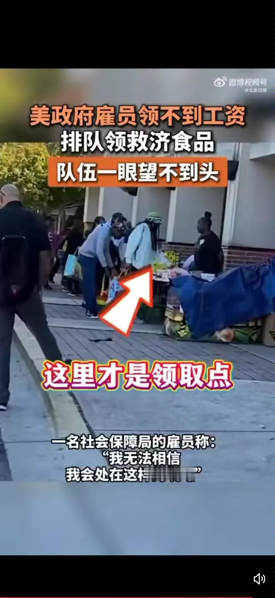 你敢信?端着“铁饭碗”的美国公务员,如今竟要排着长队领救济食品?队伍绕小区一圈,