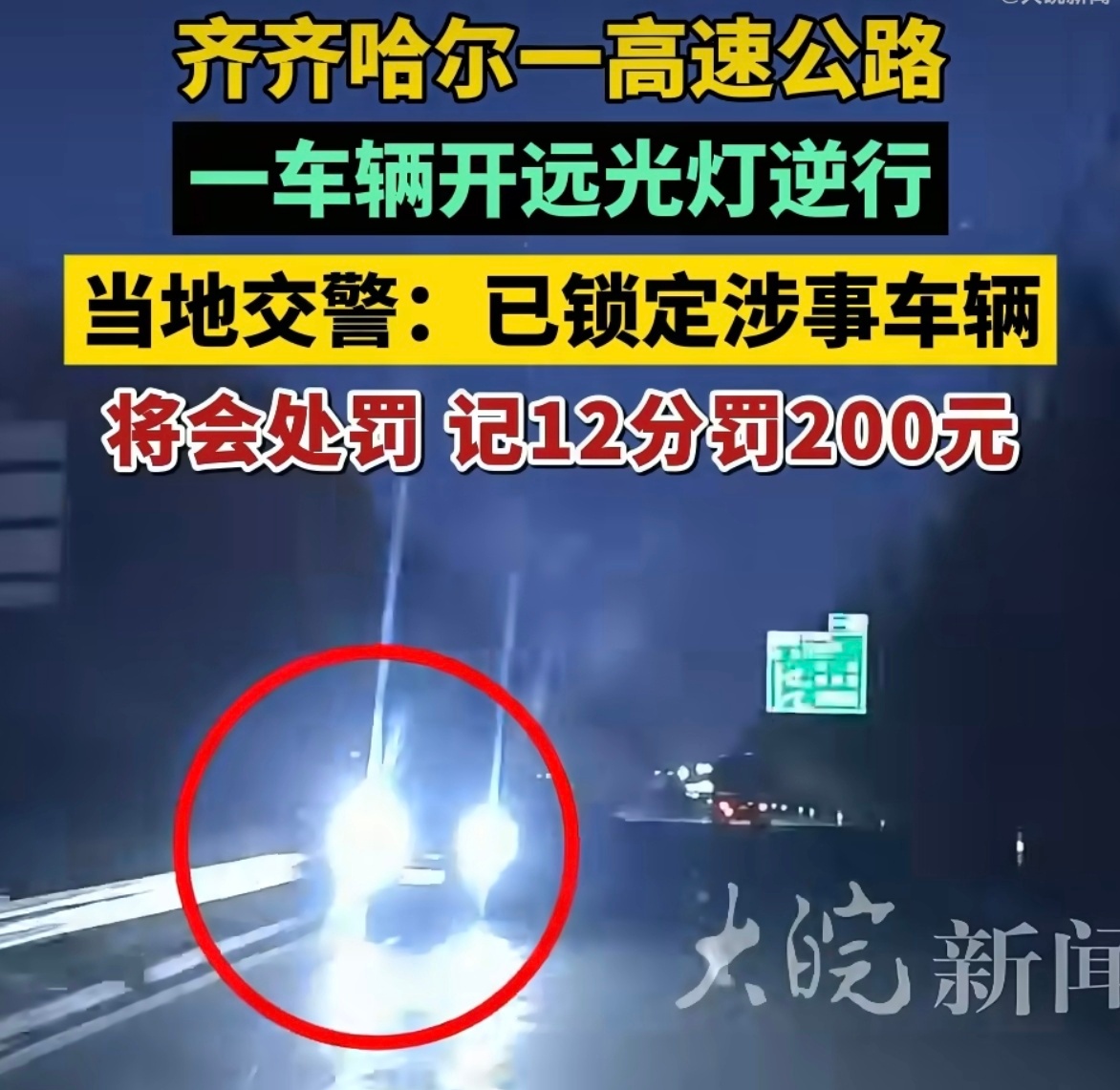 齐齐哈尔高速一SUV开远光逆行 第一个问题,这为什么不公布品牌和车型呢?是因为提品牌也没有流量吗?