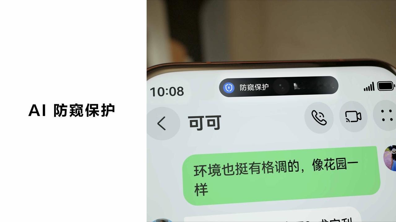 鸿蒙6全面构筑智能化的主动安全,鸿蒙加密分享支持仅可查看一次,加密分享不仅能限制查看对象,还可以设置让对方仅可查看一次,将分享数据的主动权掌握在用户手中。于和伟演绎鸿蒙隐私悬疑大片 中的AI防窥功能,可以实时识别他人注视,智能隐藏应用内容,让数据仅用户可见,带来更安全、更省心的体验。