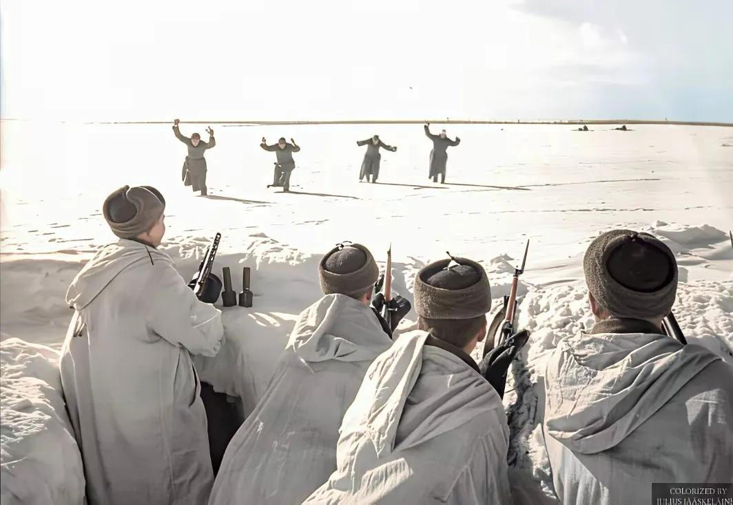 这是二战后期,苏联红军围困德军的场景。此时的德军已无力抵抗,纷纷举手投降。这是一