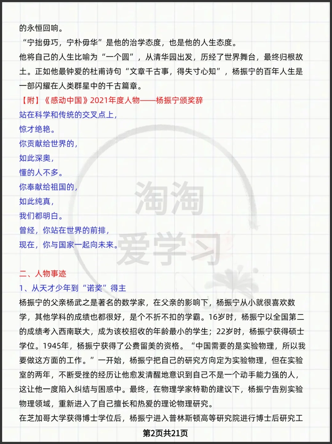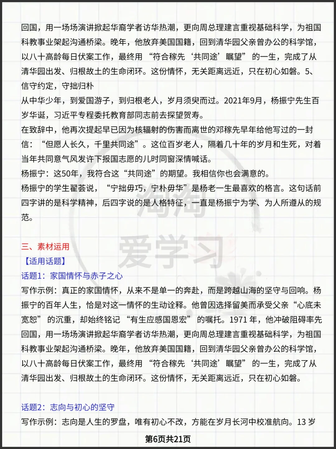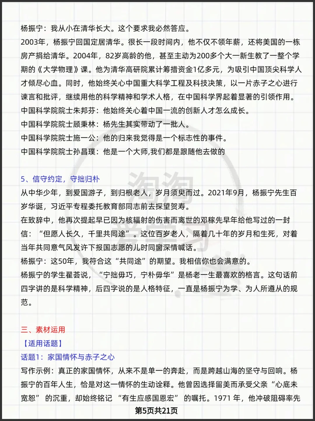 杨振宁先生写作素材新闻呈现+人物事迹+素材运用+媒体报道+高考模拟