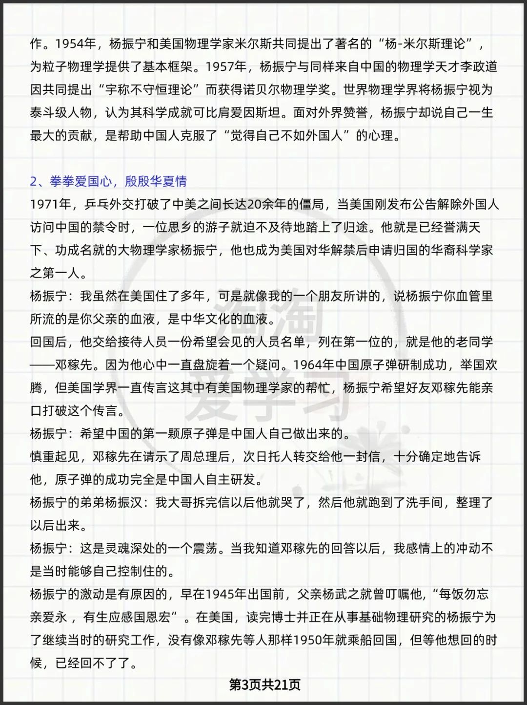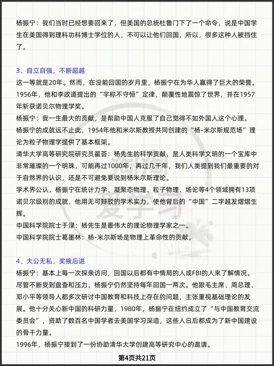 高中语文杨振宁先生写作素材