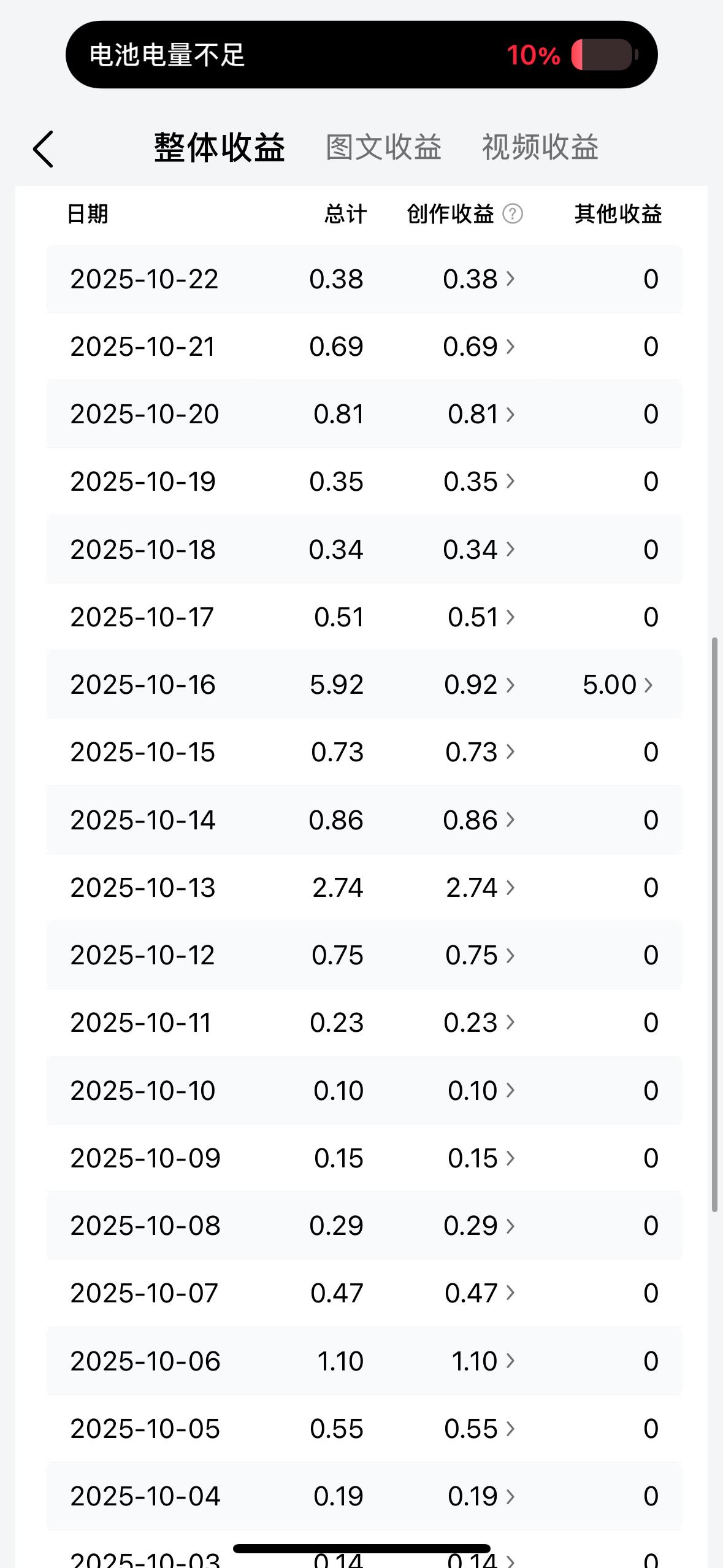 我今天在头条的收入只有0.38元,头条收入真的是一个谜,收入怎么界定完全没办法判断 有的时候写的很好,阅读量也有,就是没收益 有的时候反而会有很多 你们的收益如何呢?