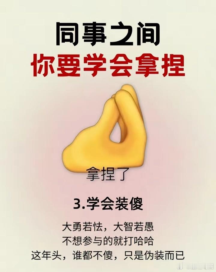 记住:拿捏不是算计,是给自己留条退路。表面高情商+内心有底线,才是职场人的“金钟罩”。毕竟,混口饭吃不容易,咱得先护住自己呀!