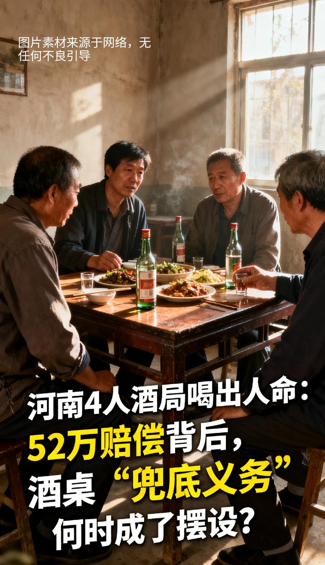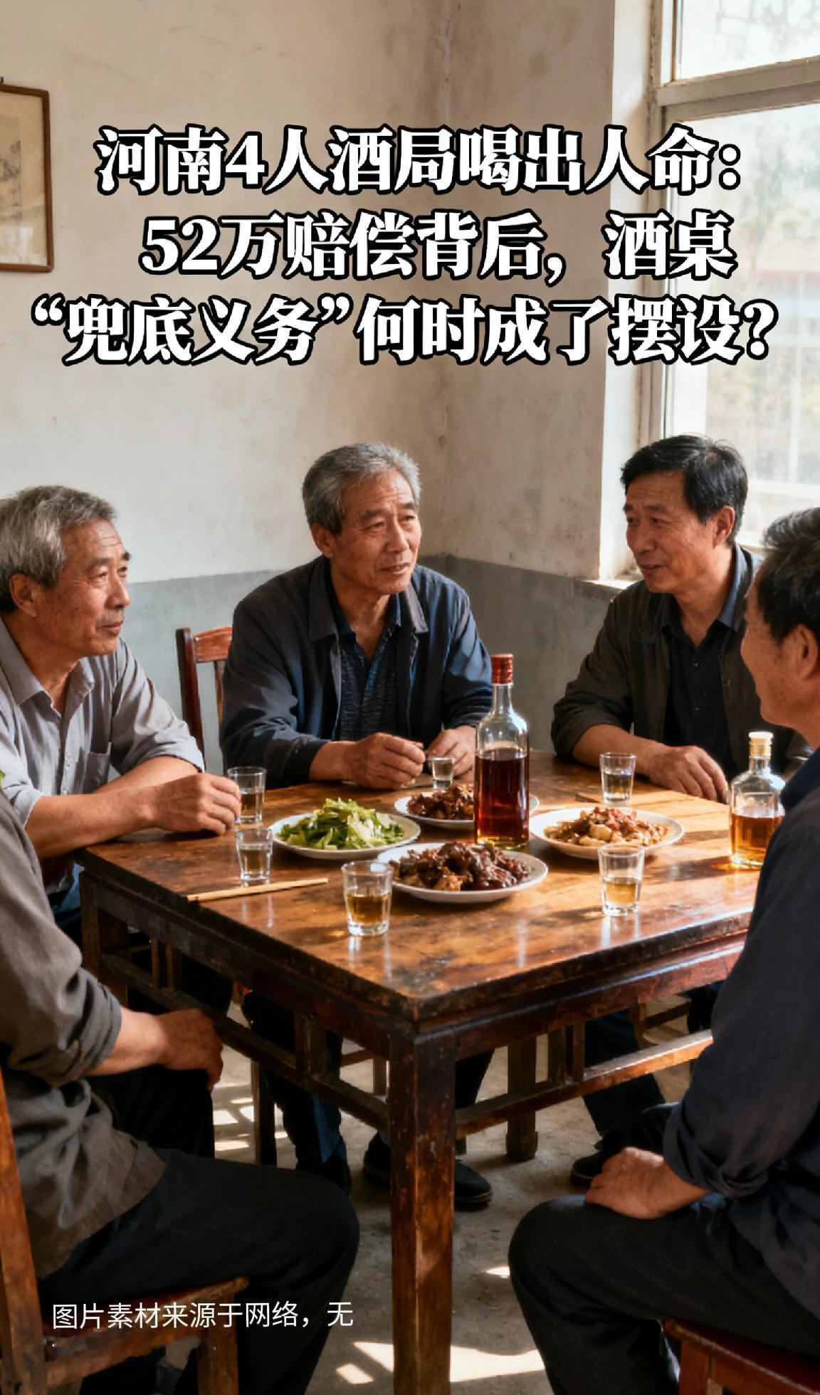 河南4人酒局喝出人命:52万赔偿背后,酒桌“兜底义务”何时成了摆设? 前言: