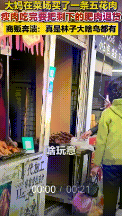 看看这位大妈有多不靠谱! 五花肉的瘦肉吃完了,剩下的肥肉愣是要退货!肉铺老板急眼了,说她不嫌磕碜,她说是孩子吃的! 这当妈的真能埋汰孩子,拿孩子当枪使! 从小姥姥就告诉我,买猪得看圈! 有这样的妈言传身教,大概率孩子也不会太在意脸面! 会不会是孩子让她退货的? 今日所见所闻