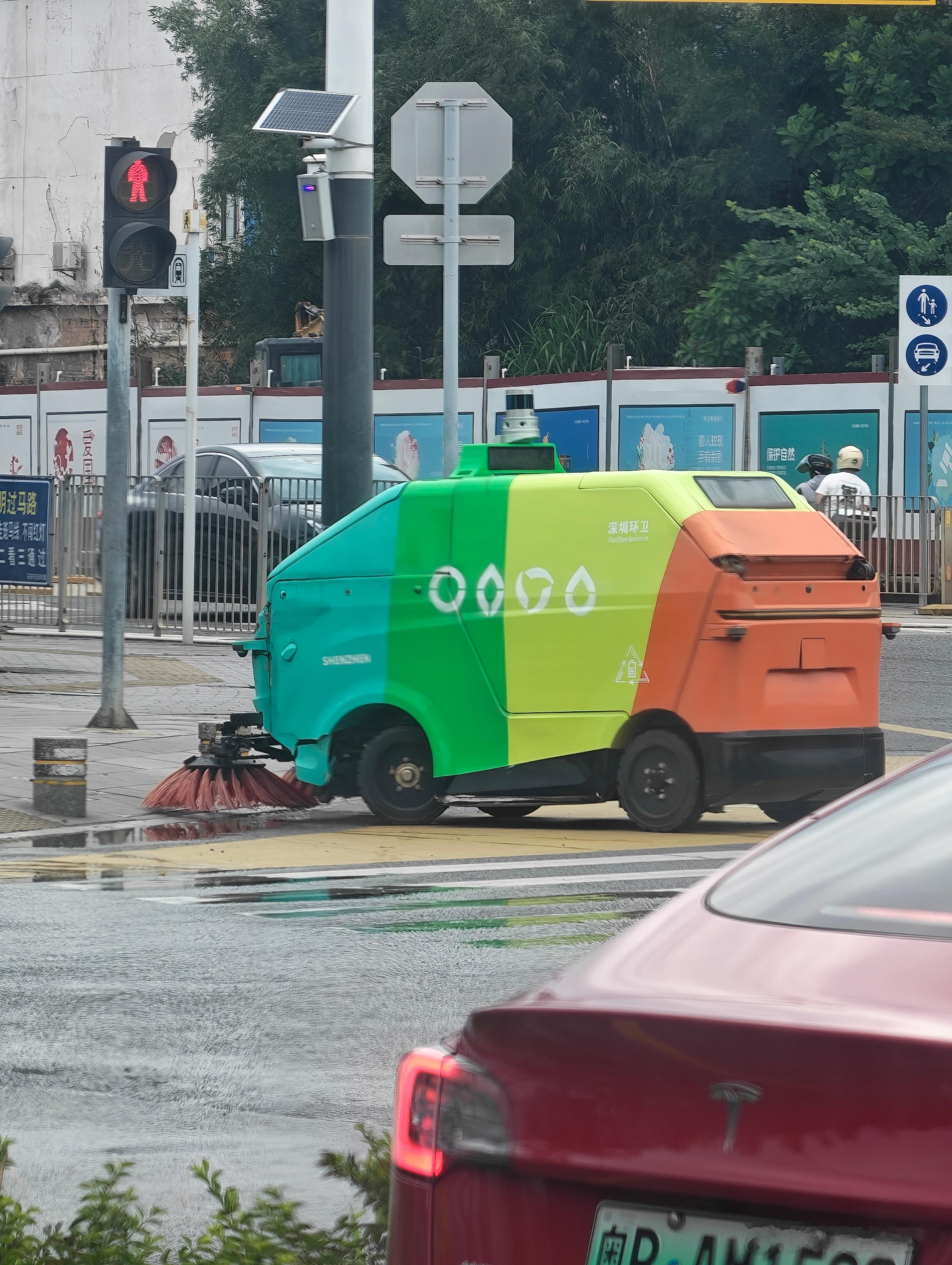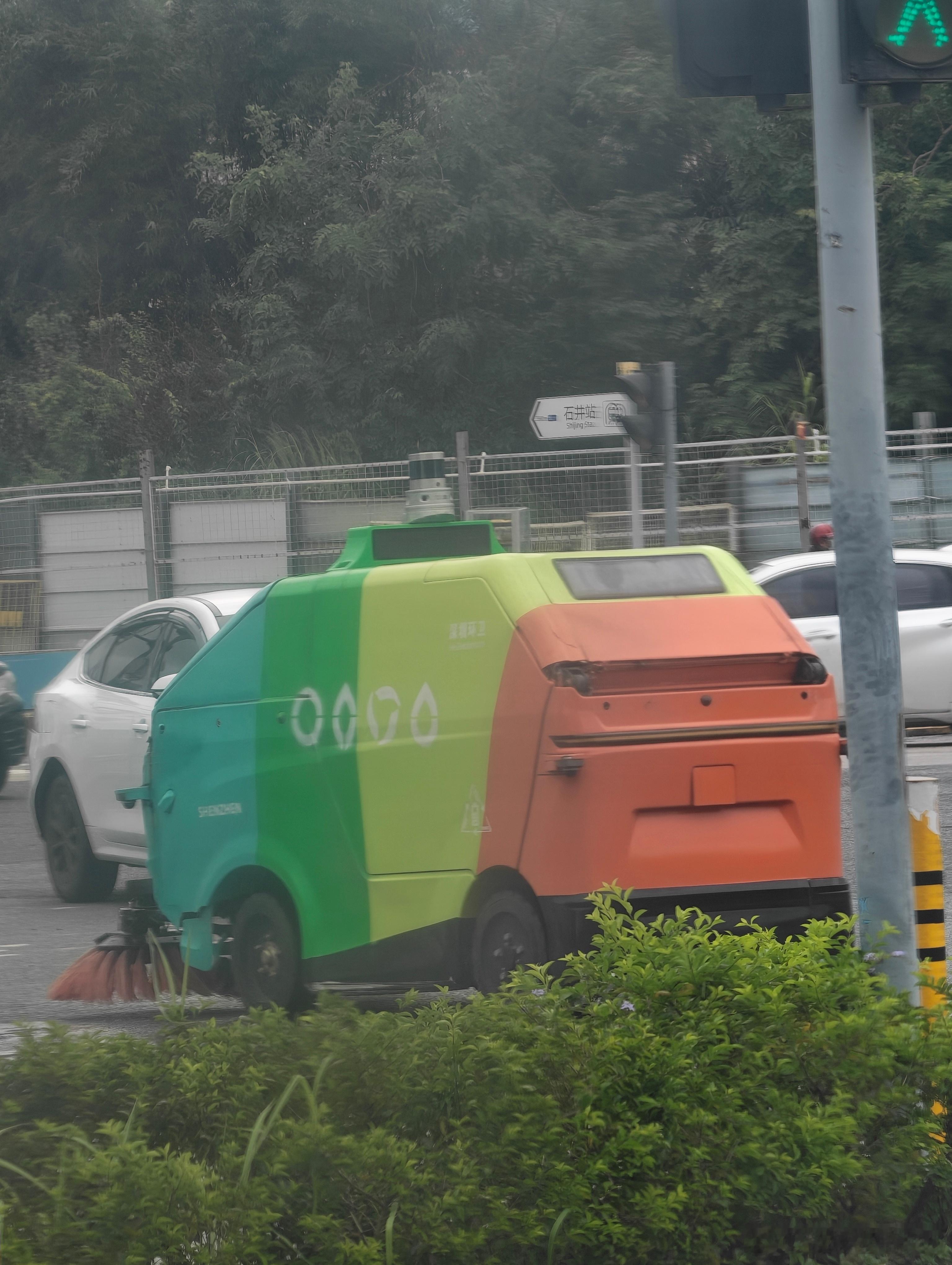 不愧是深圳,够先进,大马路上都有无人环卫车了。