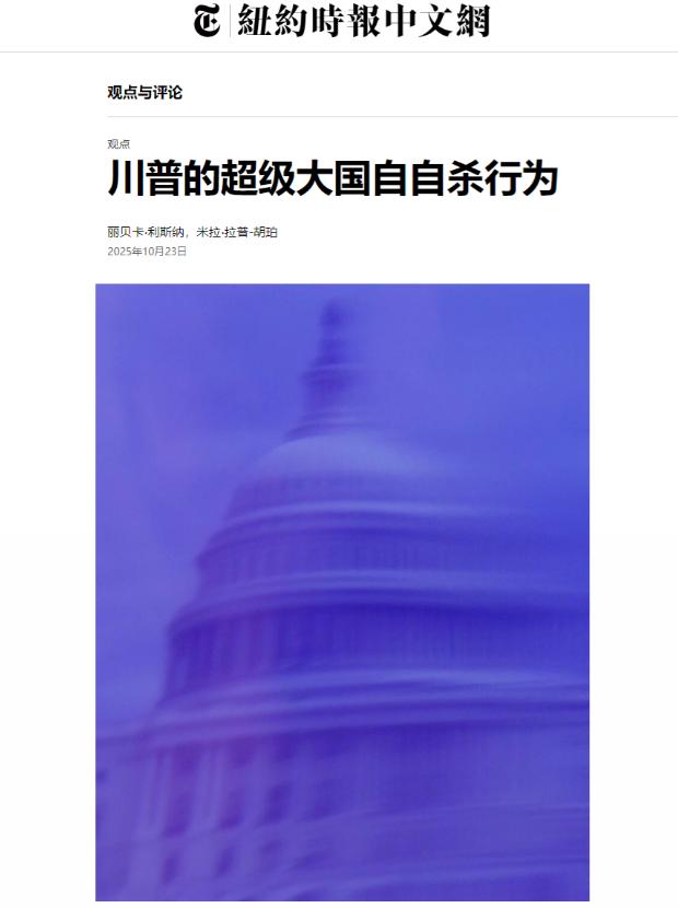 纽约时报说特朗普正在带着美国自杀!美国自二战以来80年的基业已经被特朗普在几个月