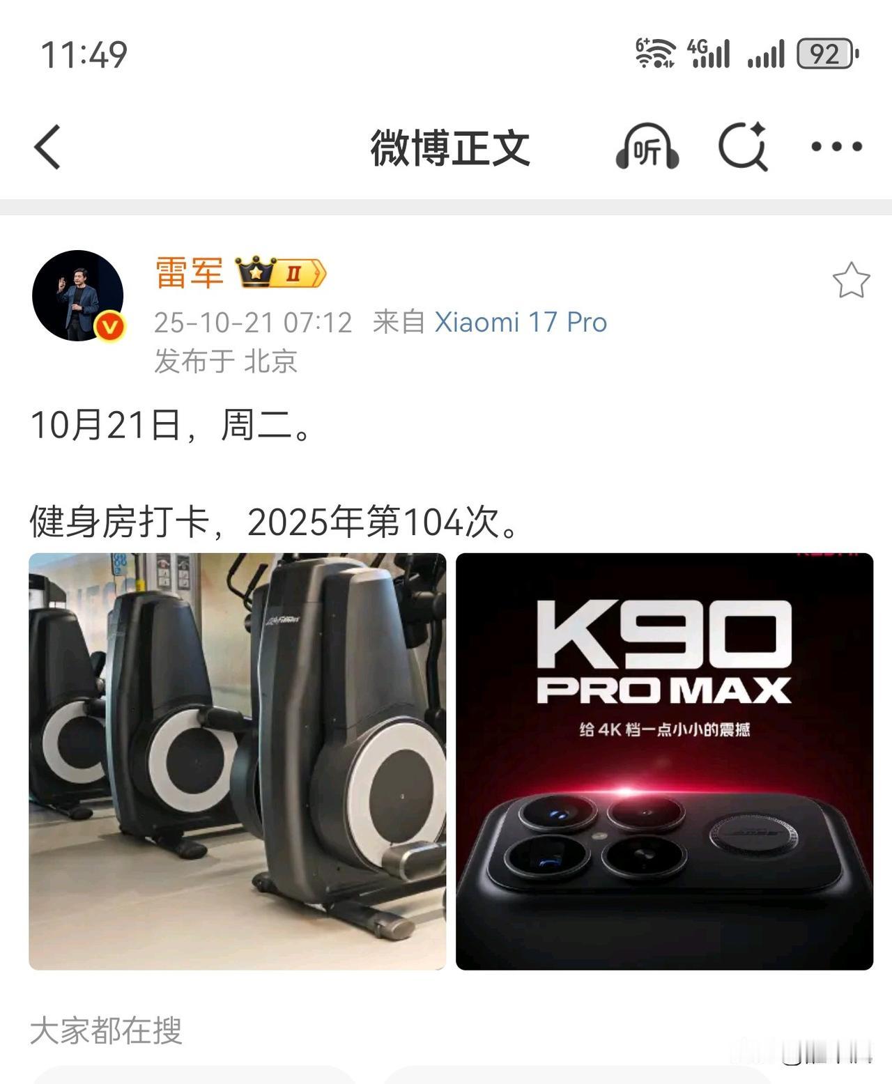 微博还是雷总接地气[赞] 余总:各种技术科普和使用分享 雷总:不是卖货就是分享健身打卡