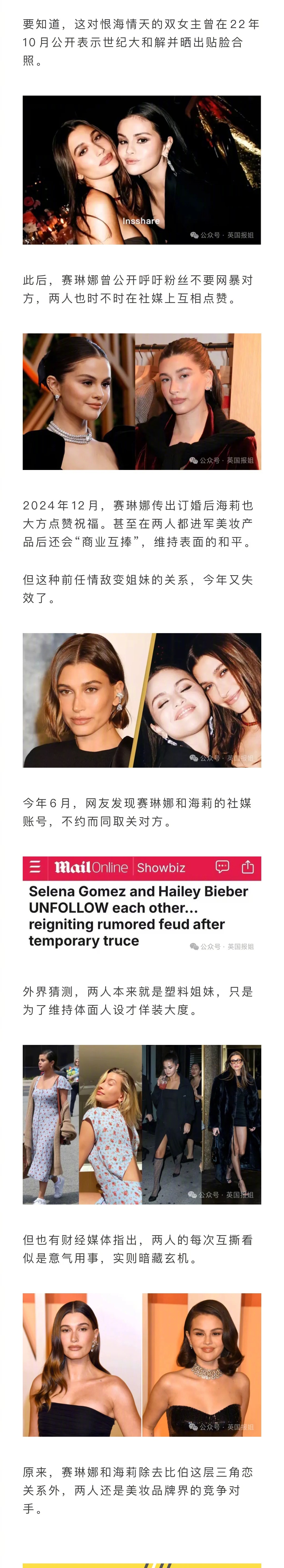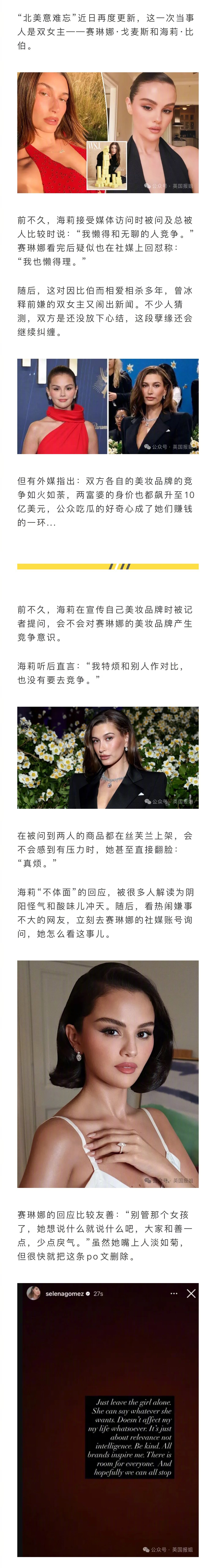 外媒爆料赛琳娜和海莉互撕10年,两人美妆产业都大赚10亿美元,网友:这瓜比黄金涨得快…