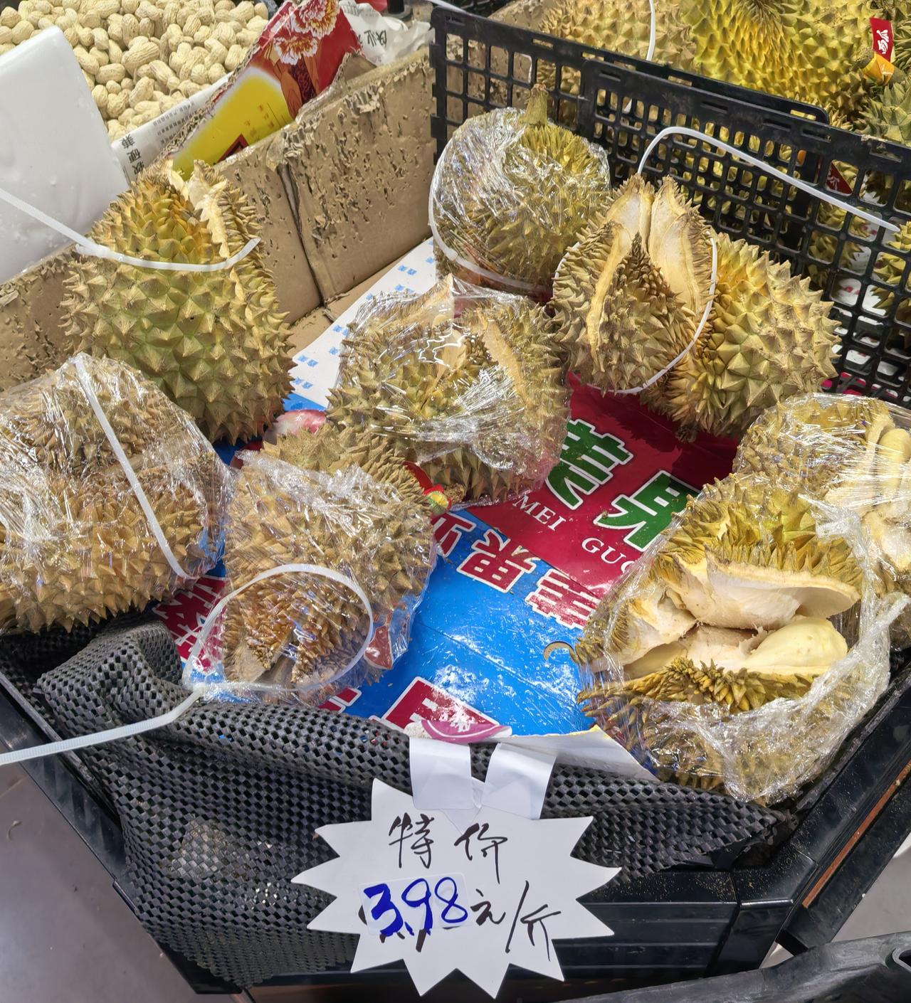 天呐!看到这榴莲标价3.98元/斤的时候,我简直不敢相信自己的眼睛!这价格也太亲民了吧,感觉像捡了天大的便宜!瞬间觉得实现“榴莲自由”就在眼前,恨不得立刻抱几个回家,这价格吃起来得多香啊! 榴莲