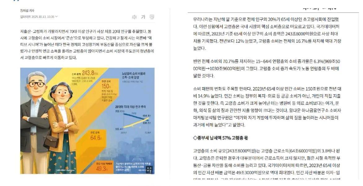 据朝鲜日报报道,70岁以上的韩国老年人已经超过20多岁的韩国年轻人,老年人成为韩国主要的消费者和纳税人。韩国正式进入超老龄化社会。 随着韩国的出生率下降和韩国的老龄化加剧,韩国老年人正成为韩国消费市场的主要消费群体。韩国老年人在韩国经济快速增长时期积累了大量资产(尤其是在房地产领域),拥有稳定养老金收入的韩国老年人数量增加,正在迅速将消费市场的主导地位从年轻人转移到老年人。 老年消费者成为韩国消费主力。 截至去年年底,韩国已进入超高龄社会,65岁及以上人口占韩国总人口的20%。这一状况使得老年人成为韩国国内市场的重要消费群体。 据韩国数据机构预测,2023年,韩国65岁及以上人群的总消费额将达到243.8万亿韩元,创历史新高。这比上一年增长了12%,其中韩国老年人消费占总消费额的16.7%,创历史新高。 相比之下,韩国占总消费70.7%的15-64岁群体的消费增长率仅为6.3%(969.5万亿韩元→1030.96万亿韩元),这意味着韩国老年人群体的消费增长率是劳动年龄人口的两倍。 韩国消费模式的变化也值得关注。预计到2023年,韩国65岁及以上人群的私人消费将达到150万亿韩元,比上一年增长14.9%。 私人消费是指个人直接支出。这意味着韩国老年人消费的大幅增增主要是休闲、文化和外出就餐等生活品质提升的支出,而非住院费等医疗支出。与过去相比,越来越多的韩国老年人选择投资休闲和自我发展,以提升生活品质。 韩国老年人的消费(243.8万亿韩元)是其劳动收入(64.6万亿韩元)的3.8倍。虽然这些人大多已退休,劳动收入有限,但他们正利用年轻时积累的房地产和金融资产来增加消费。 据韩国数据局的数据,2023年,韩国65岁以上人群的私人资产配置将达到49.3万亿韩元,创历史新高。私人资产配置是指从房地产和金融资产中获得的收入,加上通过减少储蓄或出售资产用于消费的金额。 根据韩国机构4月份的数据,韩国65岁以上家庭的资产中超过85%是房地产等实物资产。 由于韩国的房地产税的税率很高,缴纳综合房地产税(针对拥有高价房产或多处房产的人士)的韩国老年人比例正在迅速上升。 据韩国国税厅统计,韩国去年463,906名综合房地产税个人纳税人中,60岁以上者占52%。他们的纳税额达到6,244亿韩元,占总纳税额(1.0952万亿韩元)的57%。与2020年的49.1%相比,这一比例大幅上升。 韩国专家表示,韩国老年人成为韩国消费和纳税中心,是低生育率和老龄化背景下韩国社会的新格局。随着韩国20多岁人口数量减少、就业岗位短缺加剧,富裕的韩国老年人成为经济活动的驱动力,代际经济差距将进一步扩大
