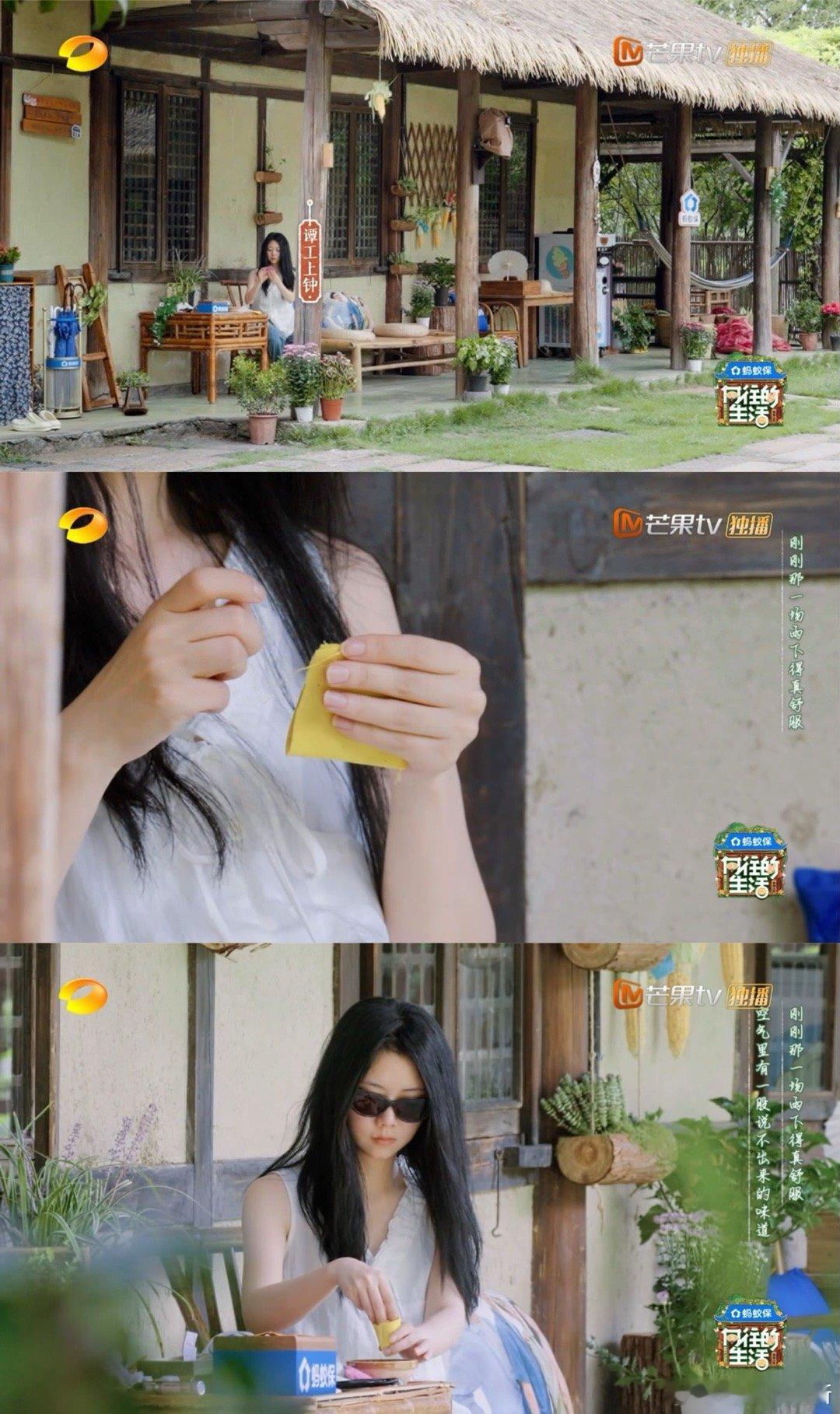 谭松韵说在向往的生活好奢侈 上午帮打下手做手工,递工具、理材料,配合得格外默契。午后她坐在院子里晒着太阳,看着远处的风景发呆,黄老师问起近况,坦言“这样晒太阳的日子太奢侈,平时根本挤不出这样的空闲”~向往的生活