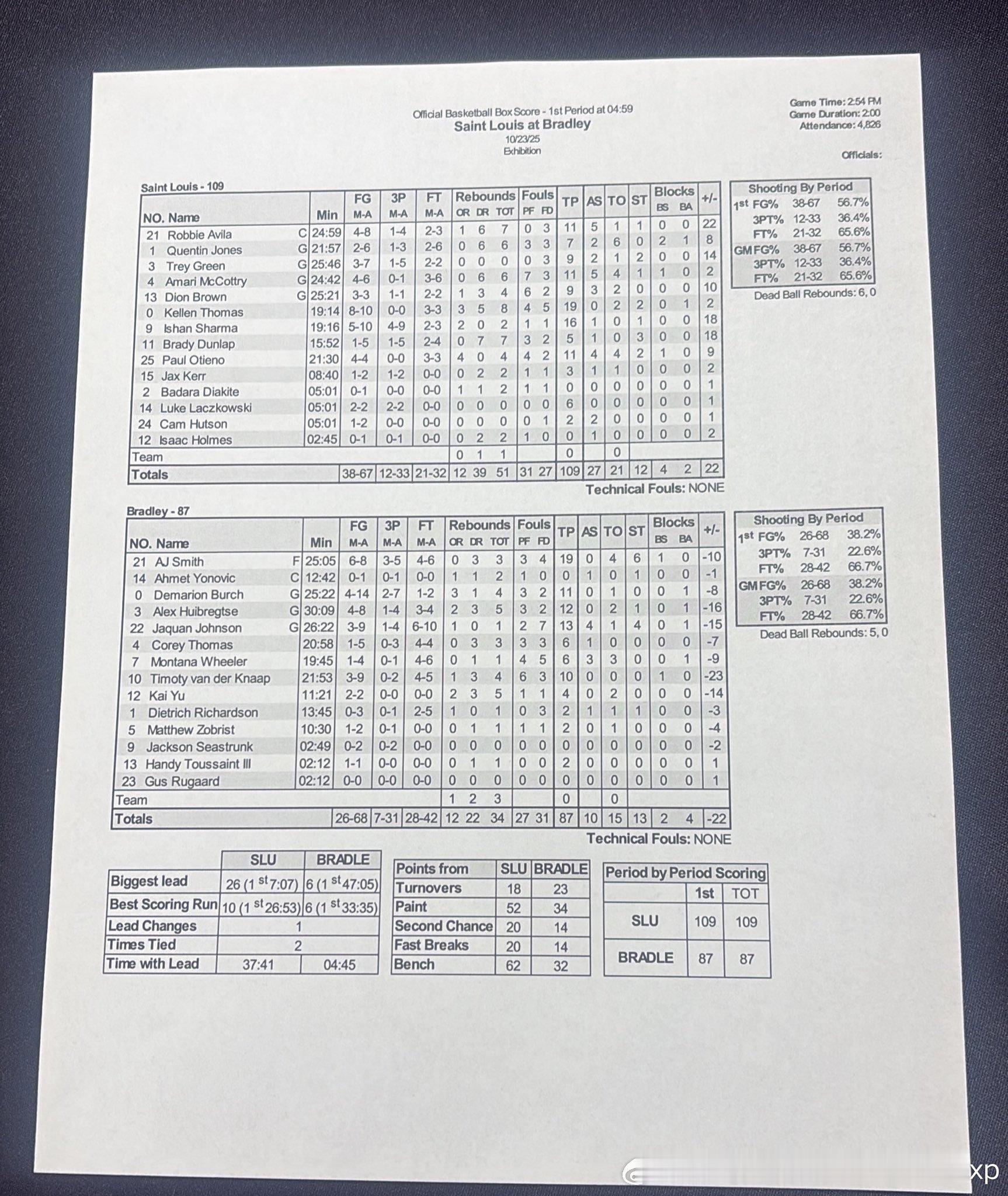 布拉德利季前赛对阵圣路易斯,于泓凯出场11分钟得到4分5板ncaa中国球员中国男篮[超话]