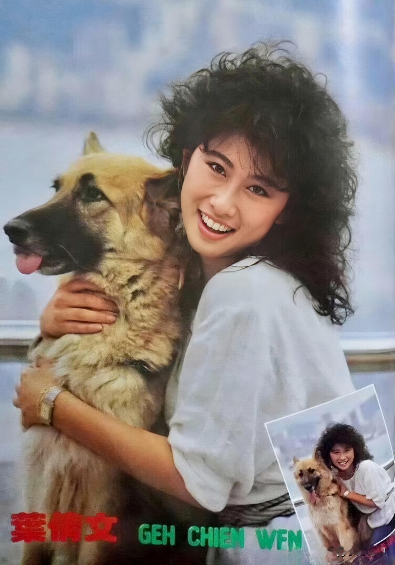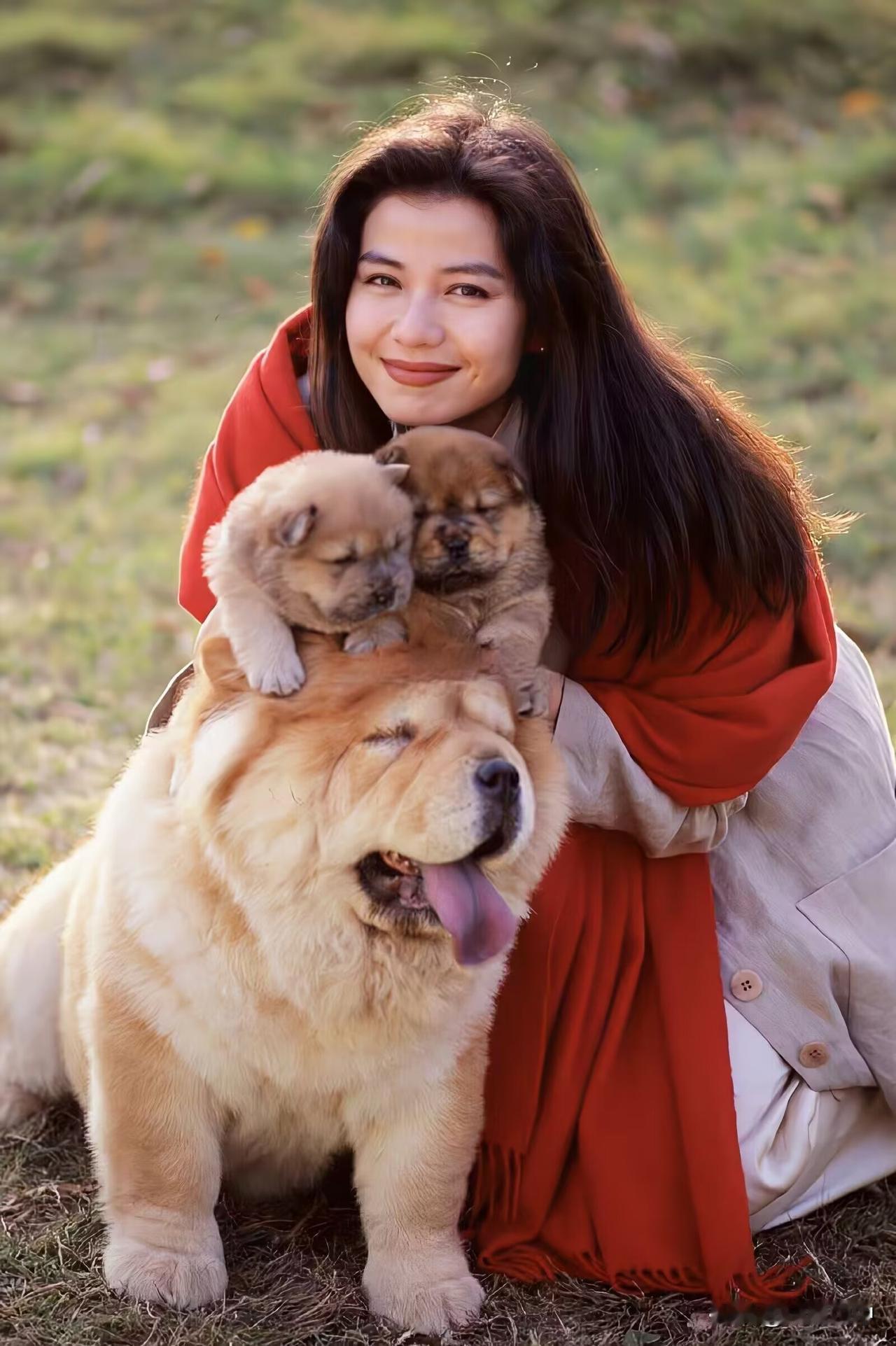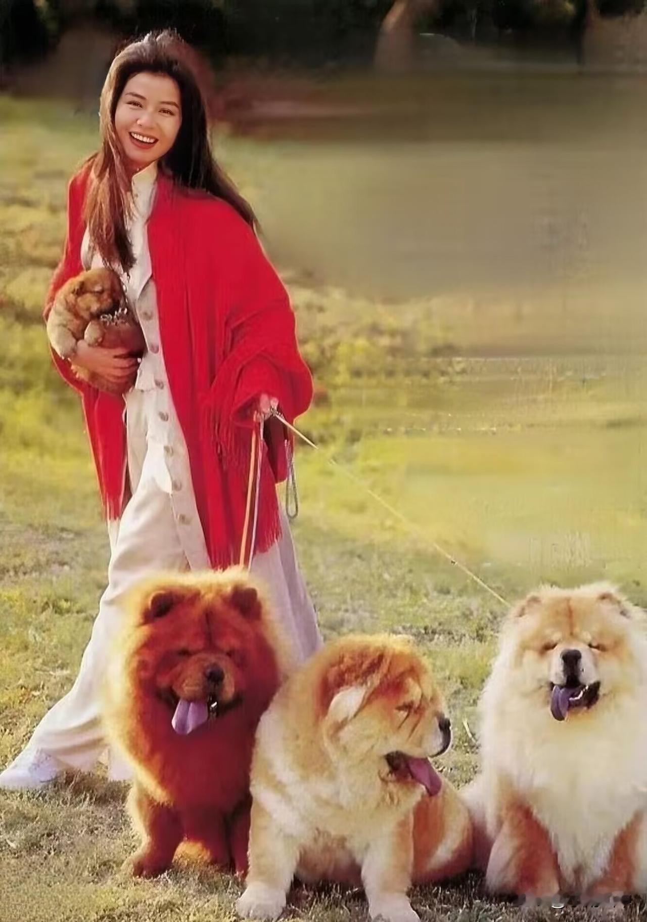 抱宠物狗的翁美玲、钟楚红、叶倩文