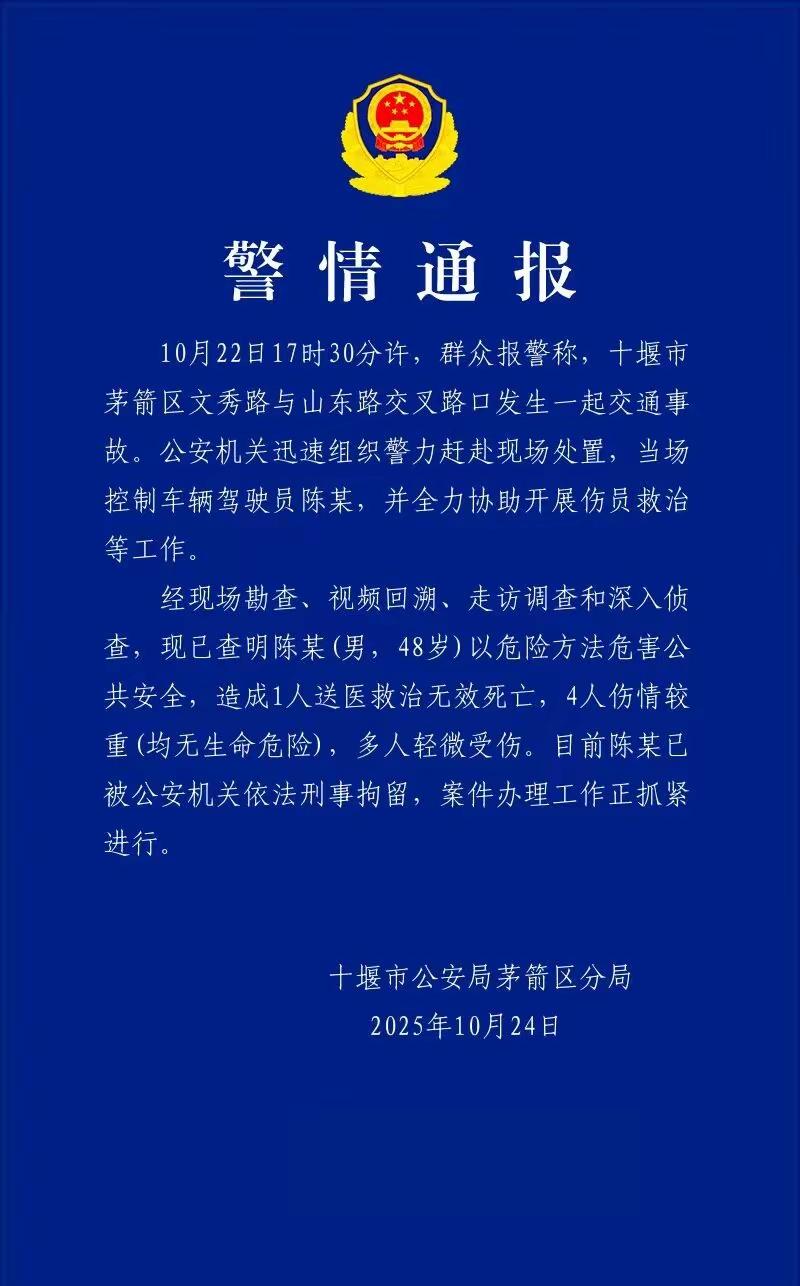 湖北十堰通报一起交通事故:1人死亡4人伤情较重,司机被以危险方法危害公共安全罪刑拘!