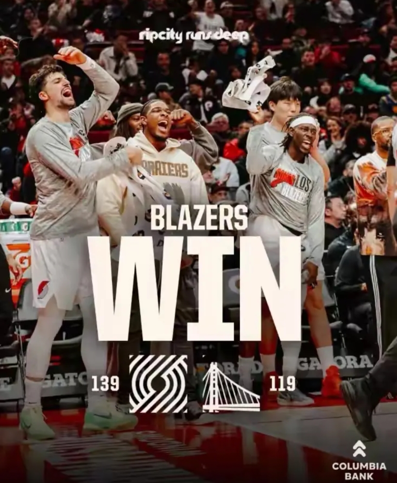 开拓者官方真是太懂人情世故了!今天开拓者在主场以139:119大胜实力强大的勇士,取得了一场酣畅淋漓的胜利。值得一提的是,在比赛结束以后,开拓者官方特意更新社媒,晒出了一张赢球海报,以此来庆祝球队的胜利。