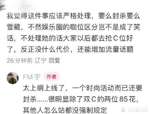 就算钟楚曦刻意这样粗暴无自知之明地抢C位,该被质疑和指责,但也不至于被网暴谴责,甚至有人扬言建议封杀她。这就言重了过分了,人家也没干啥违法乱纪的事,站错位置也不是什么大事,不至于这么上纲上线,追着人家微博谩骂吐槽,还要封杀她,不知道是谁家的粉丝这么气愤,这么大的口气。